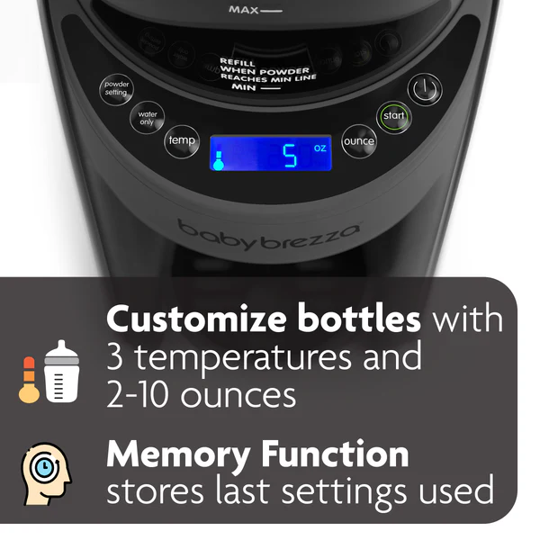 Baby Brezza Formula Advanced er byltingarkennd vél sem útbýr mjólkurpela með sem minnstri fyrirhöfn. Vélin hitar vatn og blandar við rétt magn af formúludufti í hvert skipti.