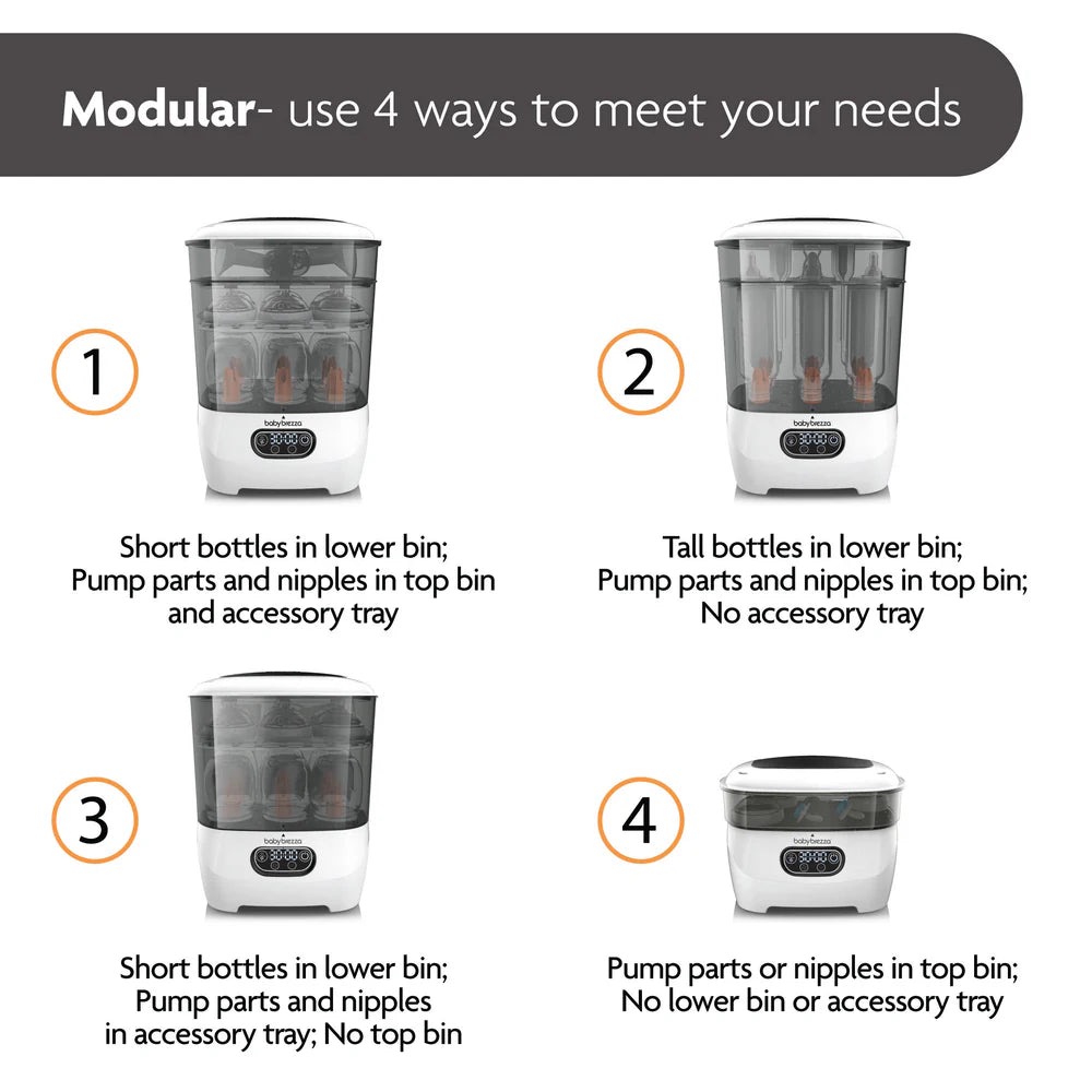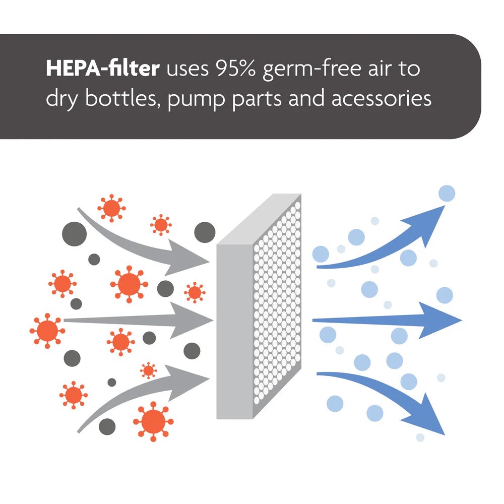 Háþróaðasta leiðin til að sótthreinsa og þurrka allar tegundir af flöskum, pumpuhlutum og fylgihlutum.