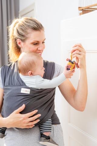 Our first sling, 25 years of service and still the best elastic sling! Unique knitting method that gives just enough elasticity to the sling for easy donning and also provides excellent support and prevents bouncing The Tricot-Slen is a long and comfortable sling made of 100% organic cotton. It allows you and your darling to wear it in several ways. You can position your sunshine in the sling both lying and sitting. Your baby’s back and head are perfectly supported. The Trciot-Slen is extremely comfortable for parents because the weight is optimally distributed over the shoulders, back and hips. The total length of the sling is 5.6 metres and is suitable from birth to approx. 18 kilograms.- Can be used from birth to approx. 18 kg