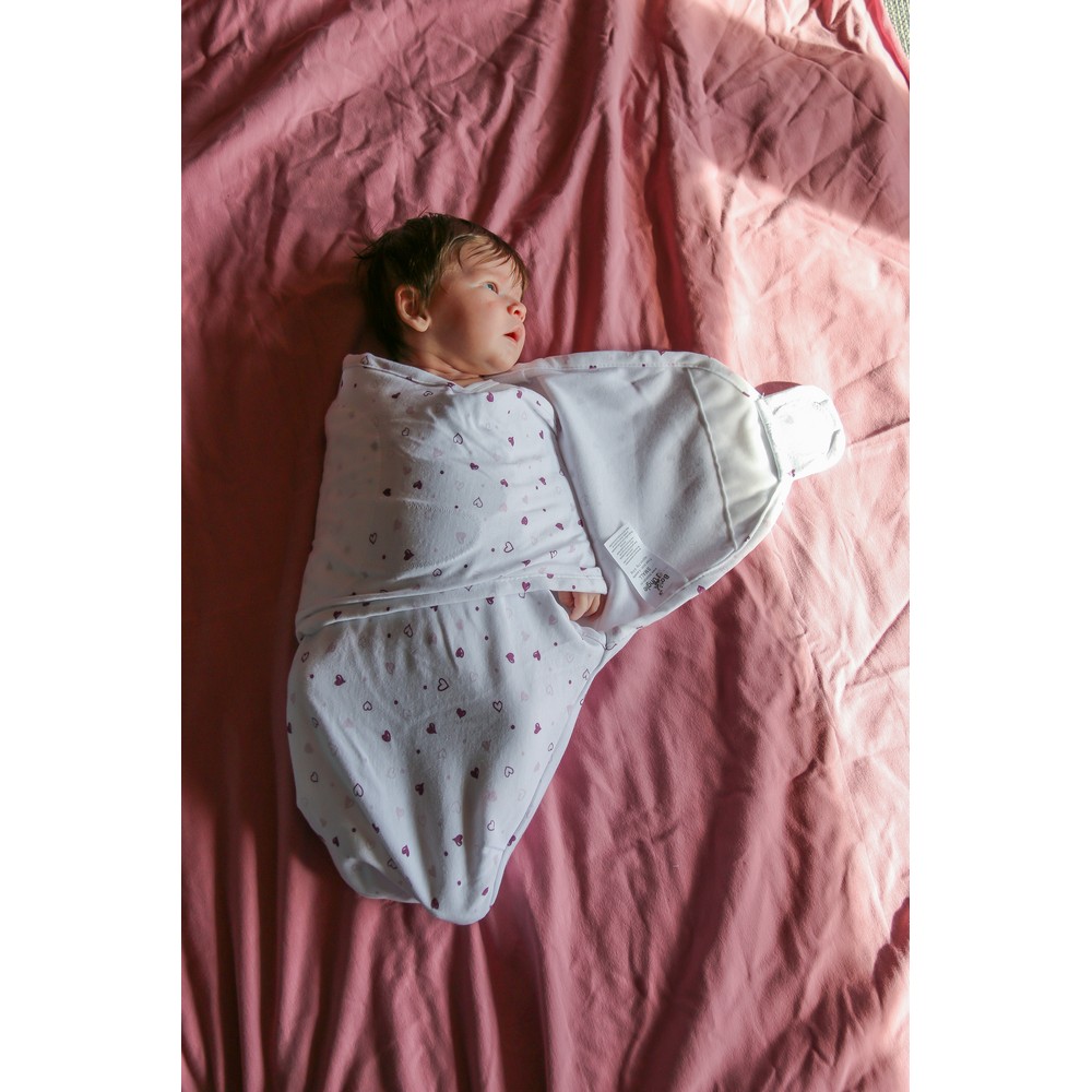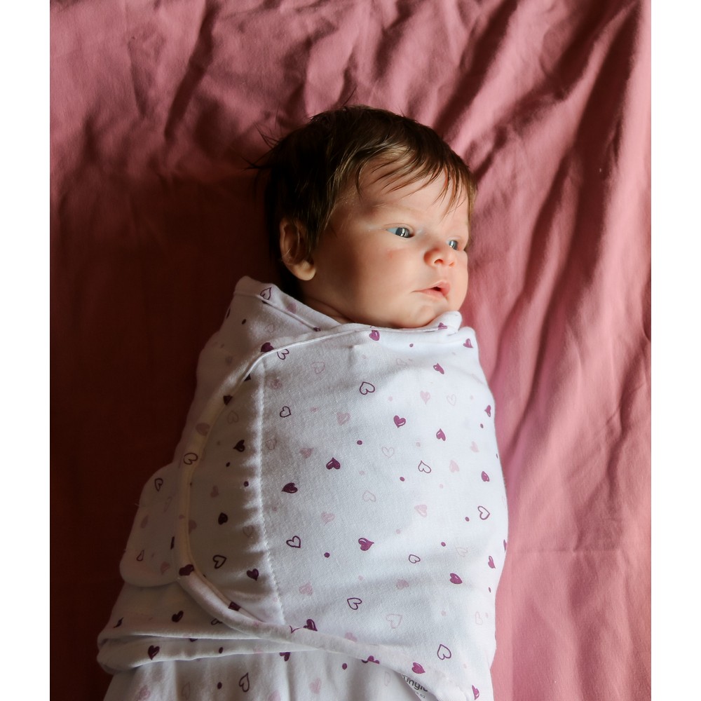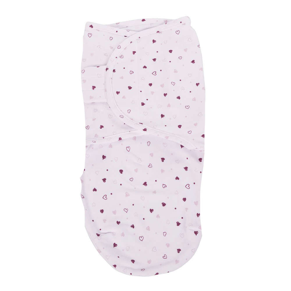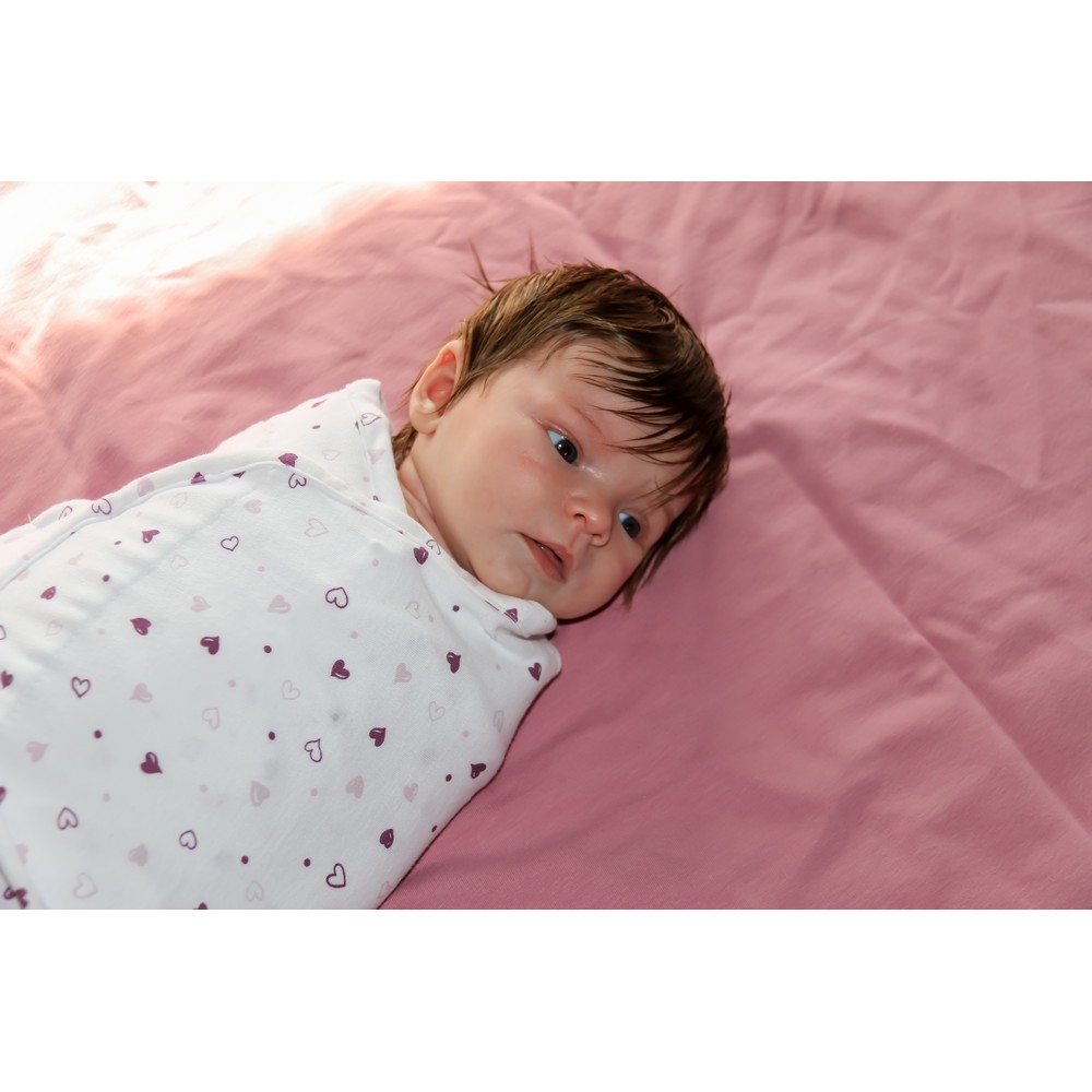 The Wrap Lovely Hearts Small is a cozy 100% cotton wrap blanket featuring a stylish pattern of lovely hearts, designed specifically for infants in the small size range (3.2 to 6.4 kg), suitable from birth until approximately 4 months. This wrapping blanket, crafted from high-quality cotton, provides a snug and comfortable environment for your little one. Simplifying the process, it offers the easiest way to swaddle your baby in just three simple steps.