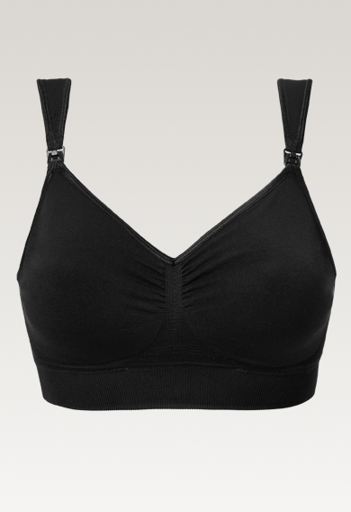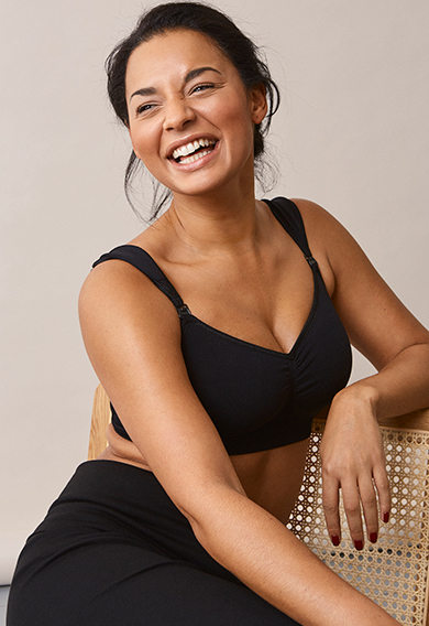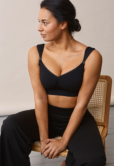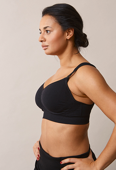 Designed for moms with a fuller bust and narrow underbust, our best-selling Elevate bra features padded shoulder straps, an extra-long adjustable hook-and-eye section, and hidden boning at the sides. All to give you lift and support where you need it most. It’s seamless and wireless for a minimizing effect, with smart clips that can be easily opened with one hand and a side panel on the inside of the cup for full breast access while nursing. Need a standard fit under the bust? Check out our Elevate bra – regular band.