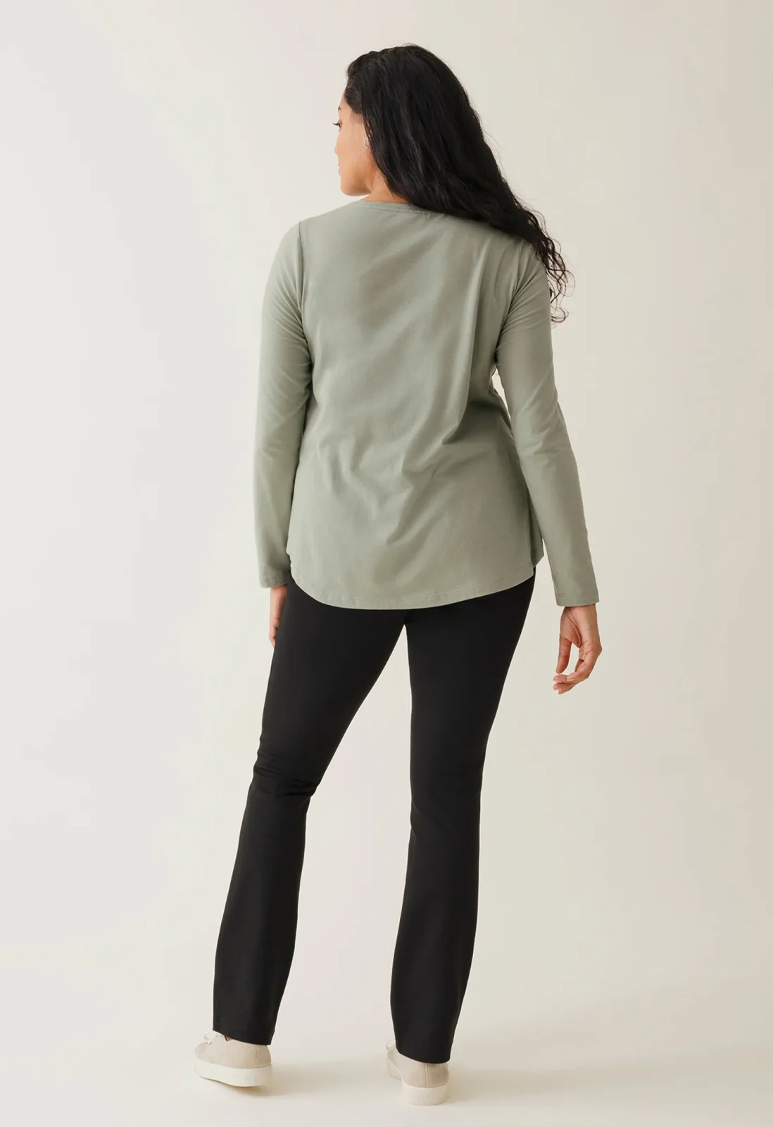 These are the maternity pants that make your whole wardrobe work. Cut to fit equally well before, during and after pregnancy. With a wide waist cuff that can be worn folded up or down and a slim leg with a flattering straight cut, they’re an easy choice goes with almost everything.