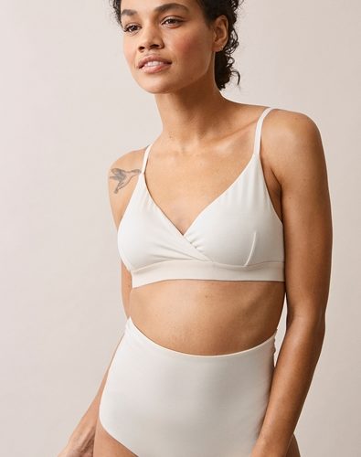 Meet the go-to full cup bra! A nursing bra specially designed for moms who need a roomier cup, it features a double layer of material in the cups with darts to add extra depth. The wrap cut makes nursing easy and the wide elastic band under the bust provides nice support. The bra is completely free of chafing points and is perfect for nighttime feedings. Thego-to full cup bra is the ultimate bra for all days of the week and all hours of the day – before, during and after pregnancy.