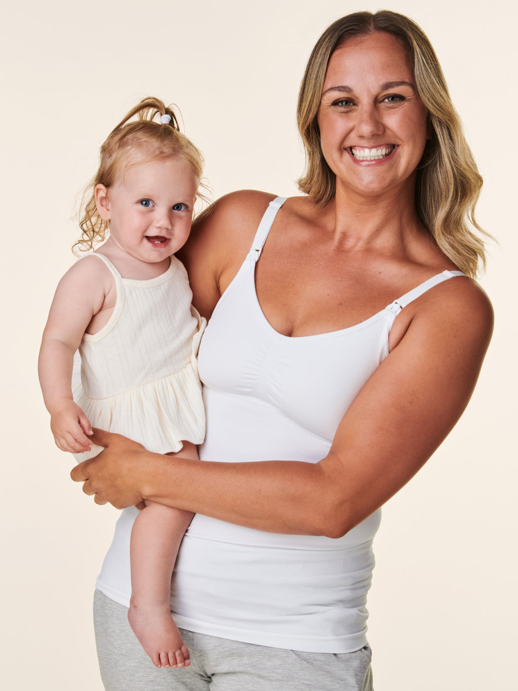 The Basics by Bravado Slimming Cami features soft and seamless fabric for ultimate comfort. The knit-in bra offers lift, support and separation, plus full nipple coverage with removable foam inserts. The nursing ‘B’-clips are secure and easy to open with one hand. Criss-cross straps and long length make it versatile to wear with different outfits. The Slimming Cami is an essential throughout pregnancy and breastfeeding!