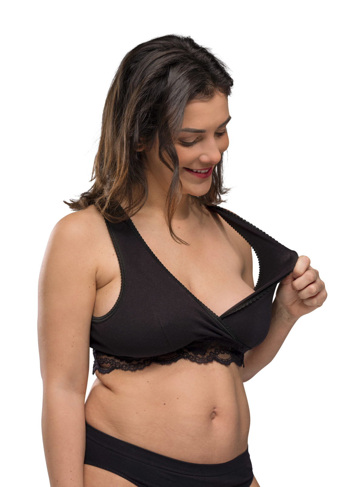 Fullkominn á meðgöngunni og veitir gott aðgengi við brjóstagjöf – einungis dregur hann til hliðar út frá hálsmálinu.