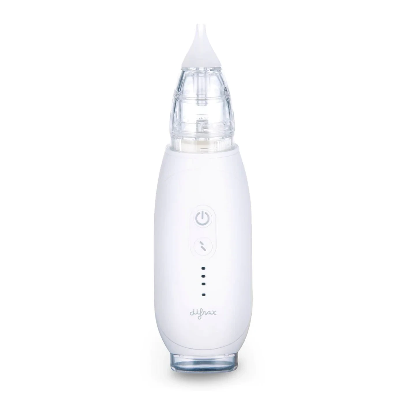 Difrax rafknúna nefsugan hreinsar nef lítilla kríla á örfáum sekúndum. Með henni fylgja 2 mjúkir stútar, einn mjór fyrir minnstu krílin og einn breiðari fyrir þau eldri.