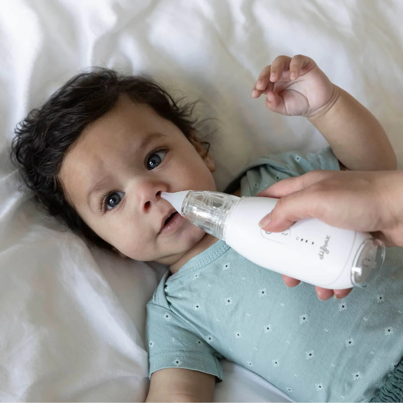 The Difrax electric nose cleaner cleans your baby’s nose in a few seconds and allows your child to breathe freely again. The set contains 2 soft, interchangeable silicone tips: narrow, for use with small children or loose, liquid mucus, and wide, for slightly bigger children or stuck, thicker mucus.