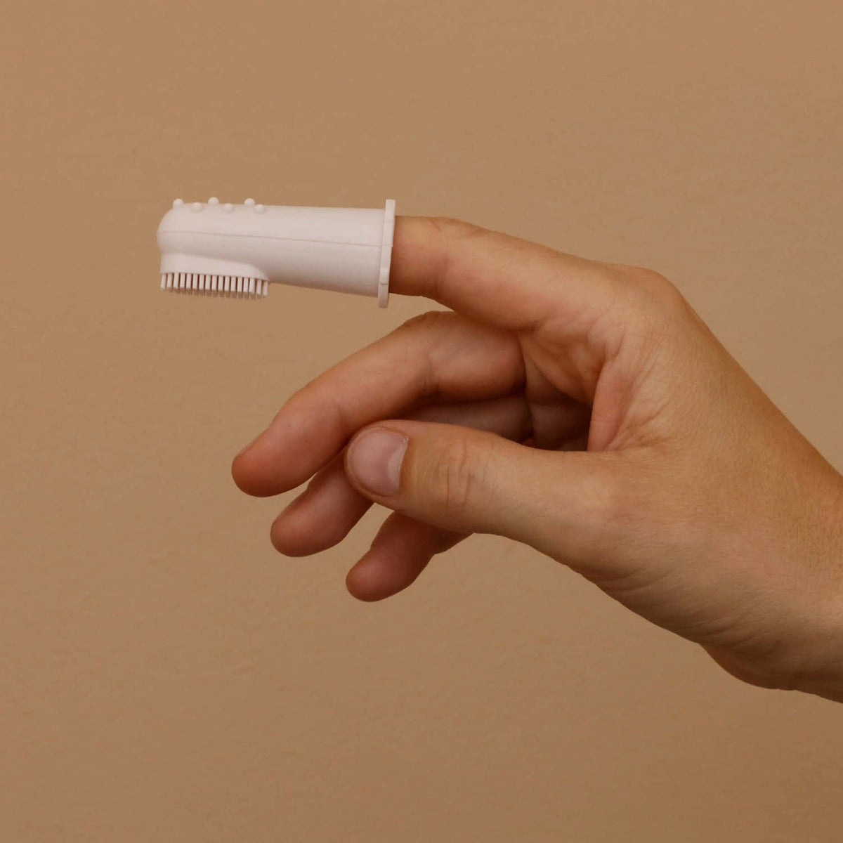 Paediatric dentists recommend that you start brushing your baby’s teeth as soon as the first teeth appear. With the Difrax fingertip toothbrush, children are introduced to brushing their teeth in a playful way. In the beginning, brushing those first few teeth with a regular toothbrush can be quite difficult. Instead, you can also use the fingertip toothbrush. Difrax lends a hand by adding massage balls to the back of the fingertip toothbrush.