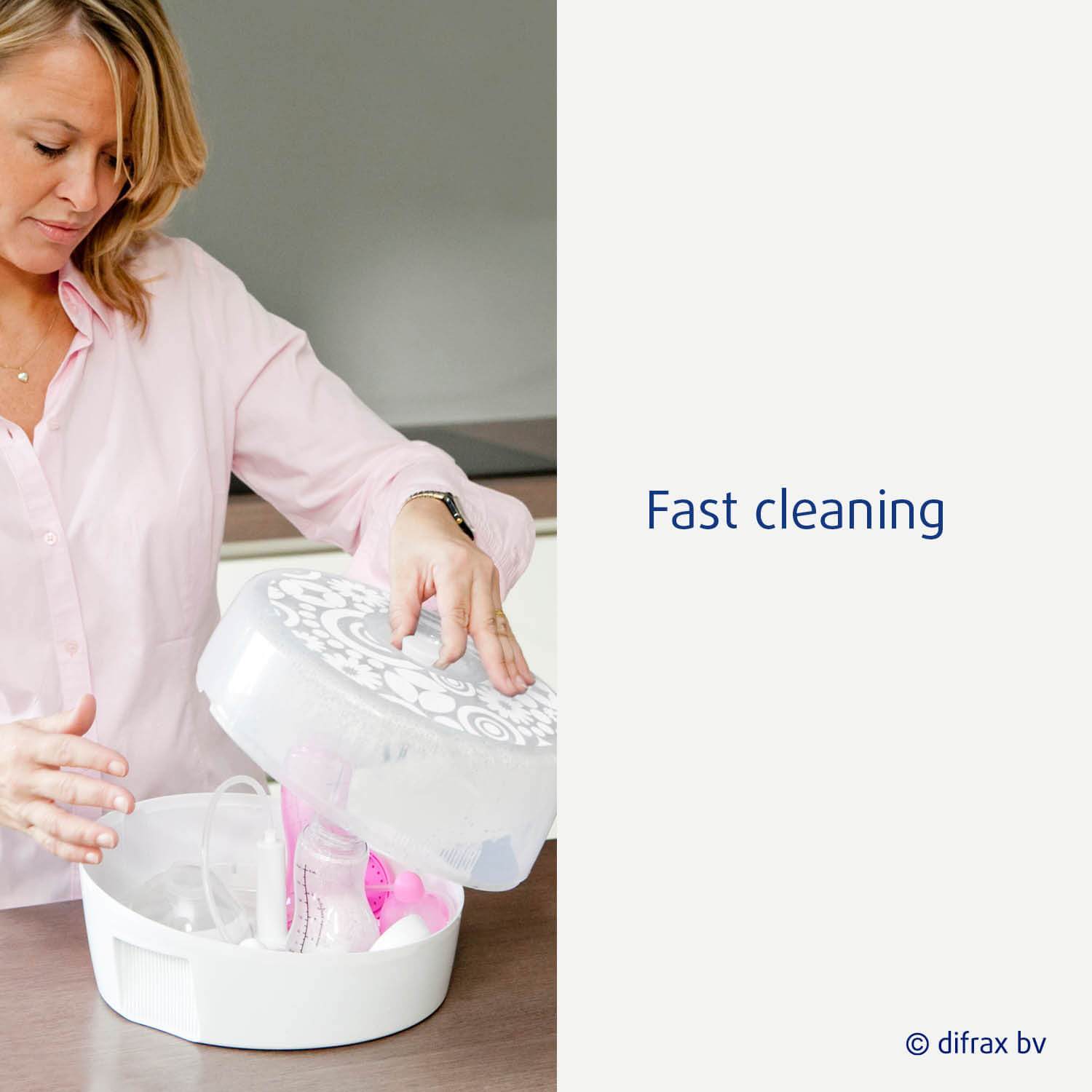 * Difrax Microwave Sterilizer sótthreinsiboxið eyðir skaðlegum bakteríum á barnavörum á nokkrum mínútum.