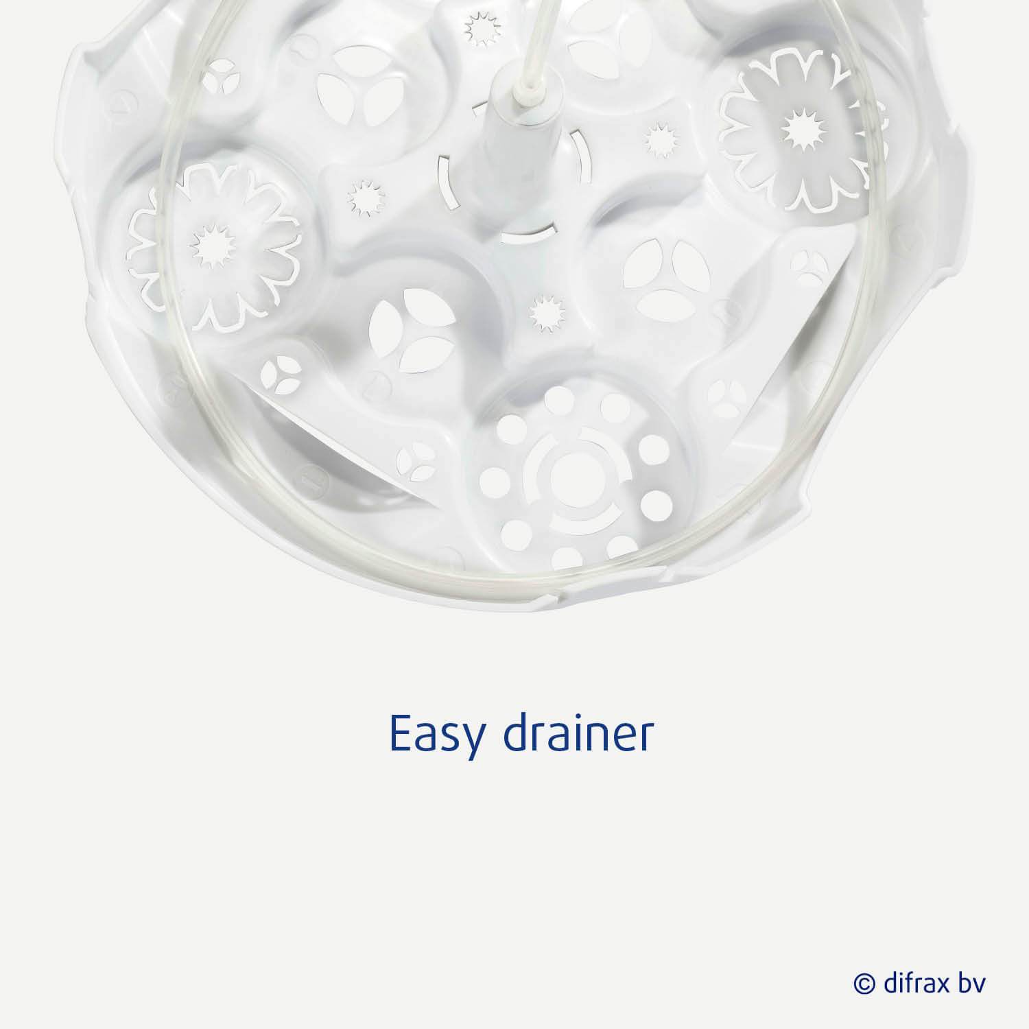 The Difrax Microwave Sterilizer is also suitable for sterilising parts of the Difrax Breast pump. It includes a connection to sterilise the breastfeeding milk tube of the Difrax breast pump. Tip: The inner rack of the Microwave Steriliser can also be used as a hygienic water drainer so that the S-baby bottles don’t need to be dried by hand.