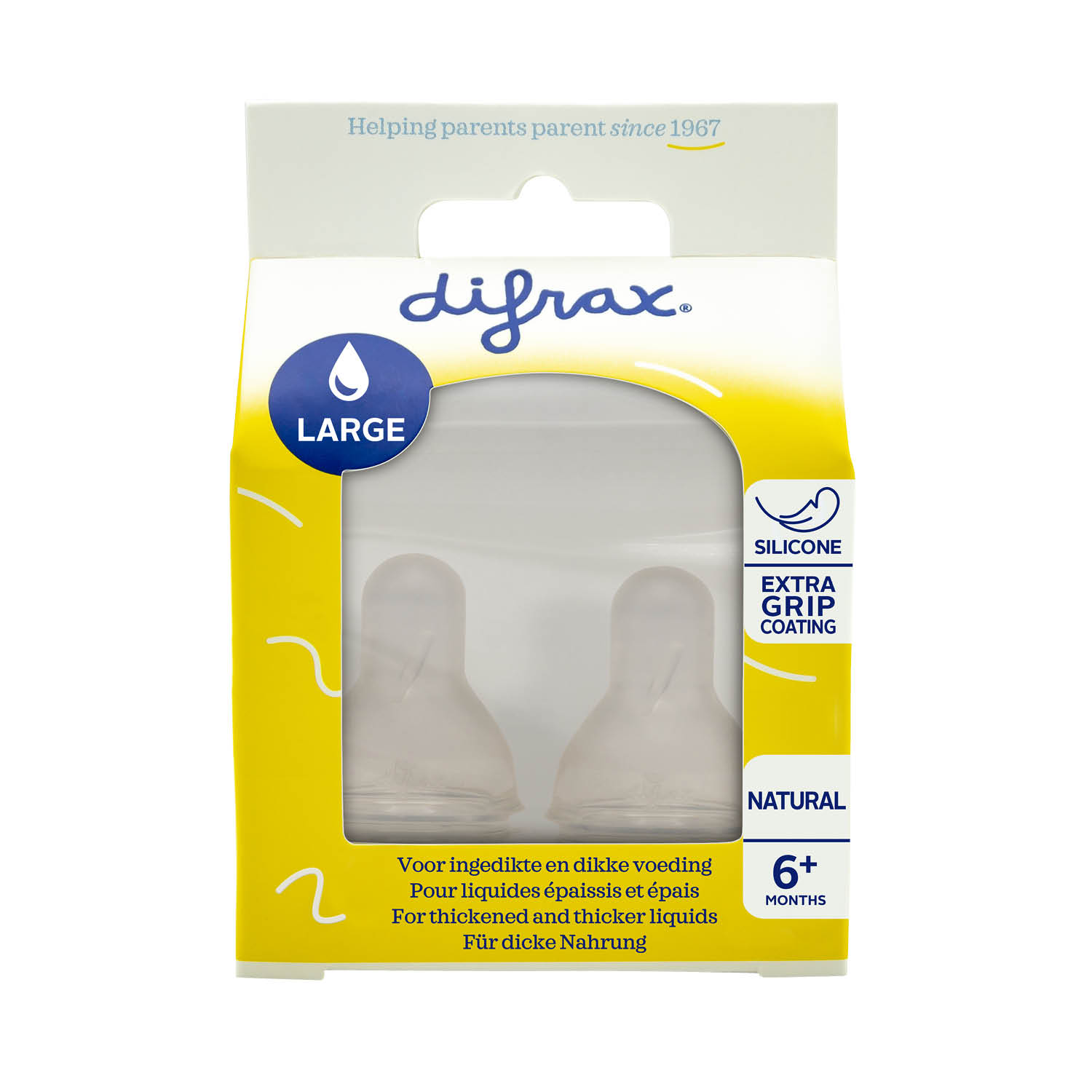 The Difrax Bottle Teat Natural – Large fits the normal S-baby bottle and has a silky soft, breast nipple-shaped teat which resembles the mother’s breast. This perfectly facilitates mixed feeding, rotational breastfeeding and bottle feeding.