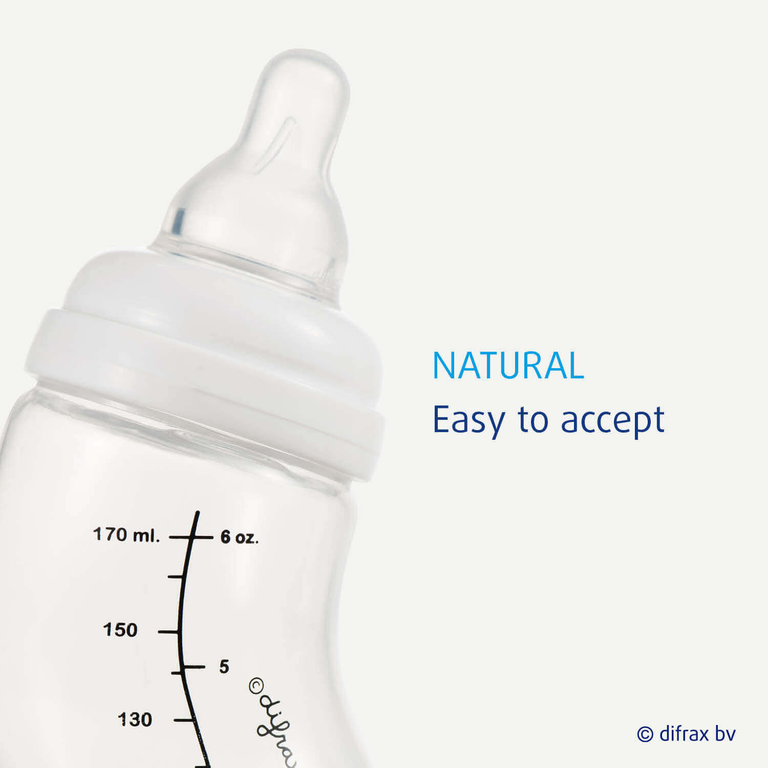 The Difrax Bottle Teat Natural – Small fits the normal S-baby bottle and has a silky soft, breast nipple-shaped teat which resembles the mother’s breast. This perfectly facilitates mixed feeding, rotational breastfeeding and bottle feeding.