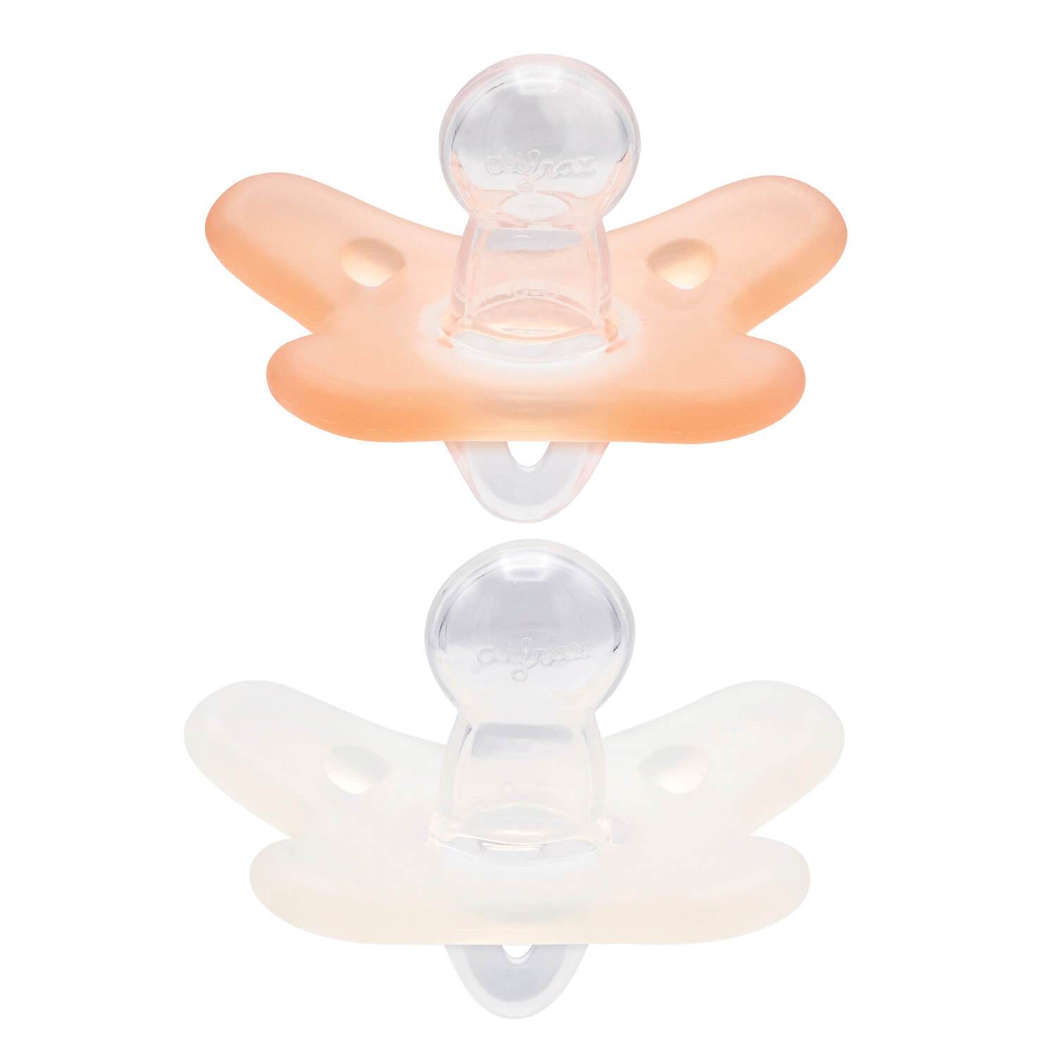 • Extrasoft silicone collar, even more pleasant for your baby • The butterfly shape leaves the nose clear • The extraair supply prevents skin irritation • Developedin collaboration with healthcare professionals • Duopack • Color: Blossom/White or Ice/Gray • Dutch Design Difrax pacifiers have a butterfly-shaped collar. This keeps the nose clear and the pacifier fits well on the face. The holes in the collar provide additional air supply, which prevents irritation to the skin. The pacifier size has been specially developed for babies from around 0 to 6 months old.Natural pacifiers have a round, symmetrical shape, which most babies accept most easily. Difrax pacifiers were developed in collaboration with speech therapists and dentists.