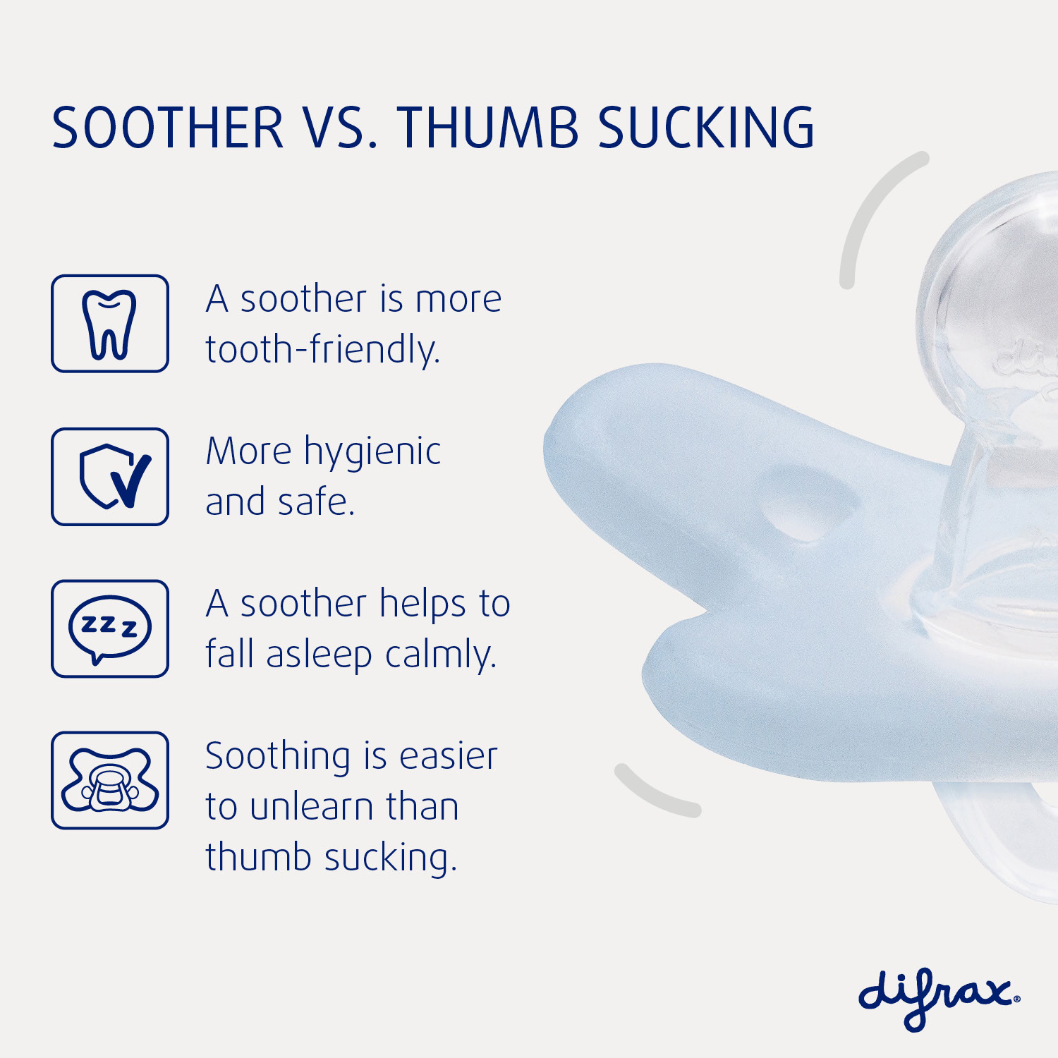 * Difrax vörurnar eru þróaðar í samvinnu við læknateymi sem m.a. samanstendur af barnalæknum, talmeinatæknum, tannlæknum, mjólkursérfræðingum og næringarráðgjöfum.