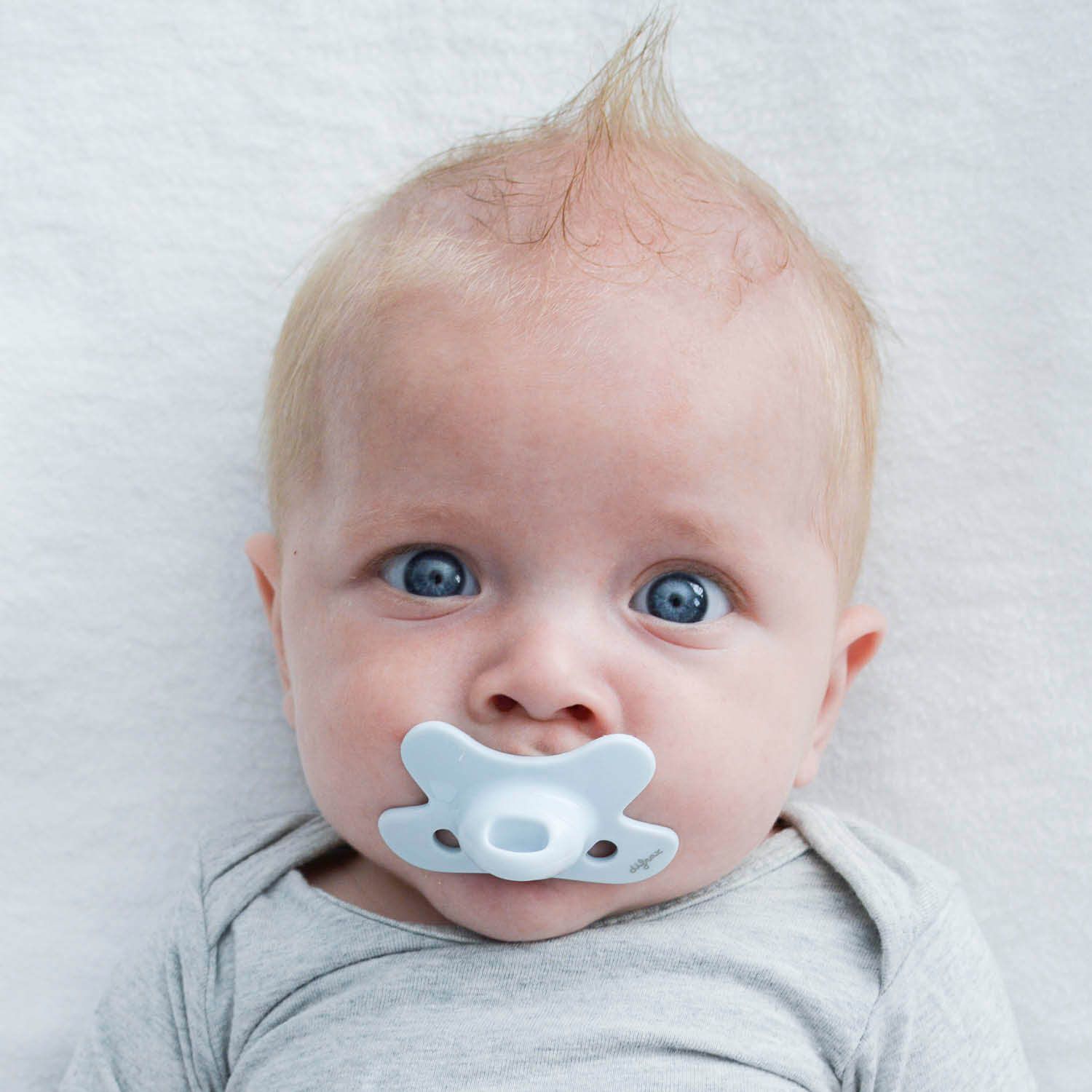 The unique pacifier has a butterfly shaped shield ensuring a perfect fit to your baby’s face. The recess for the nose enables your baby to breathe freely through the nose. Two airy holes on each side provide additional airflow, preventing skin irritation.