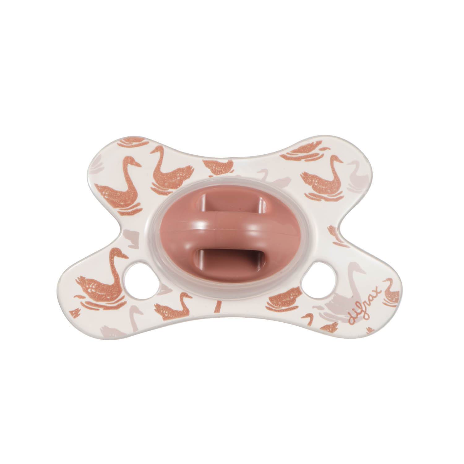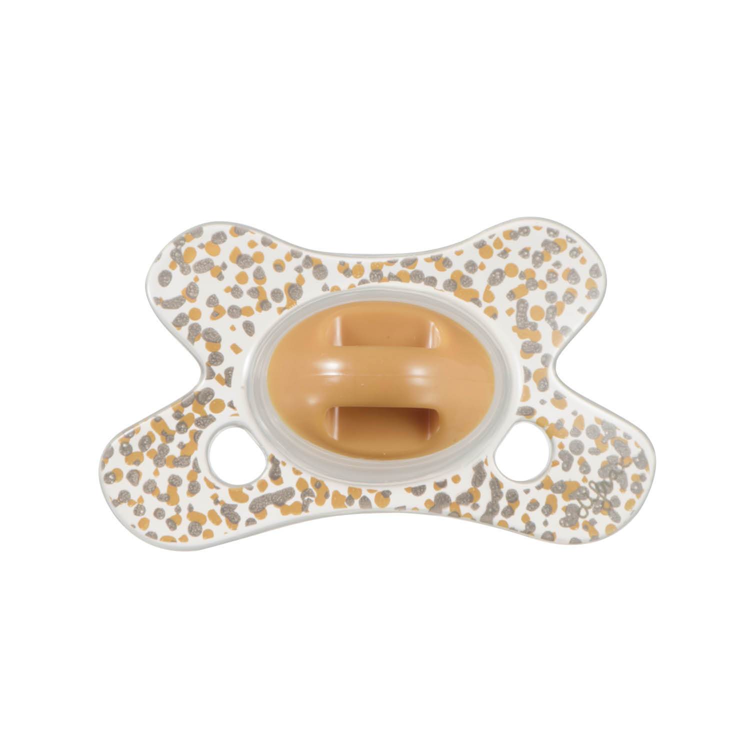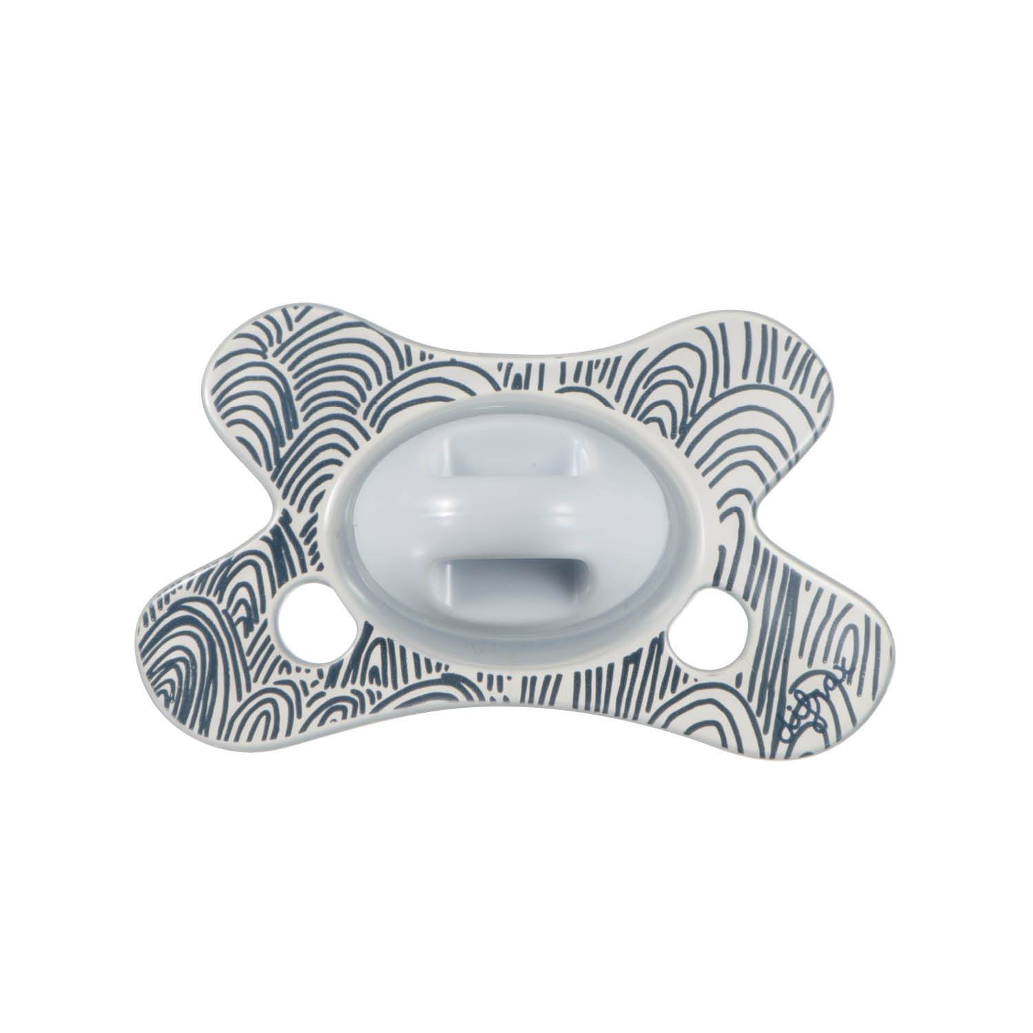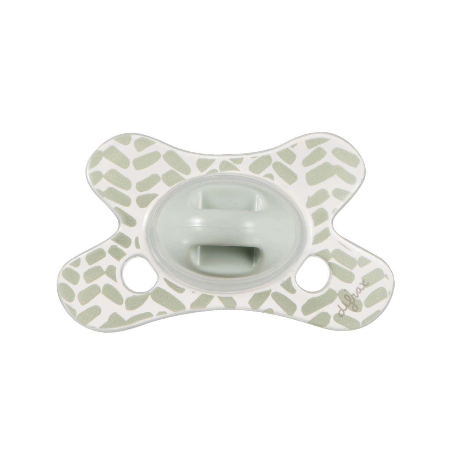 The unique pacifier has a butterfly shaped shield ensuring a perfect fit to your baby’s face. The recess for the nose enables your baby to breathe freely through the nose. Two airy holes on each side provide additional airflow, preventing skin irritation.