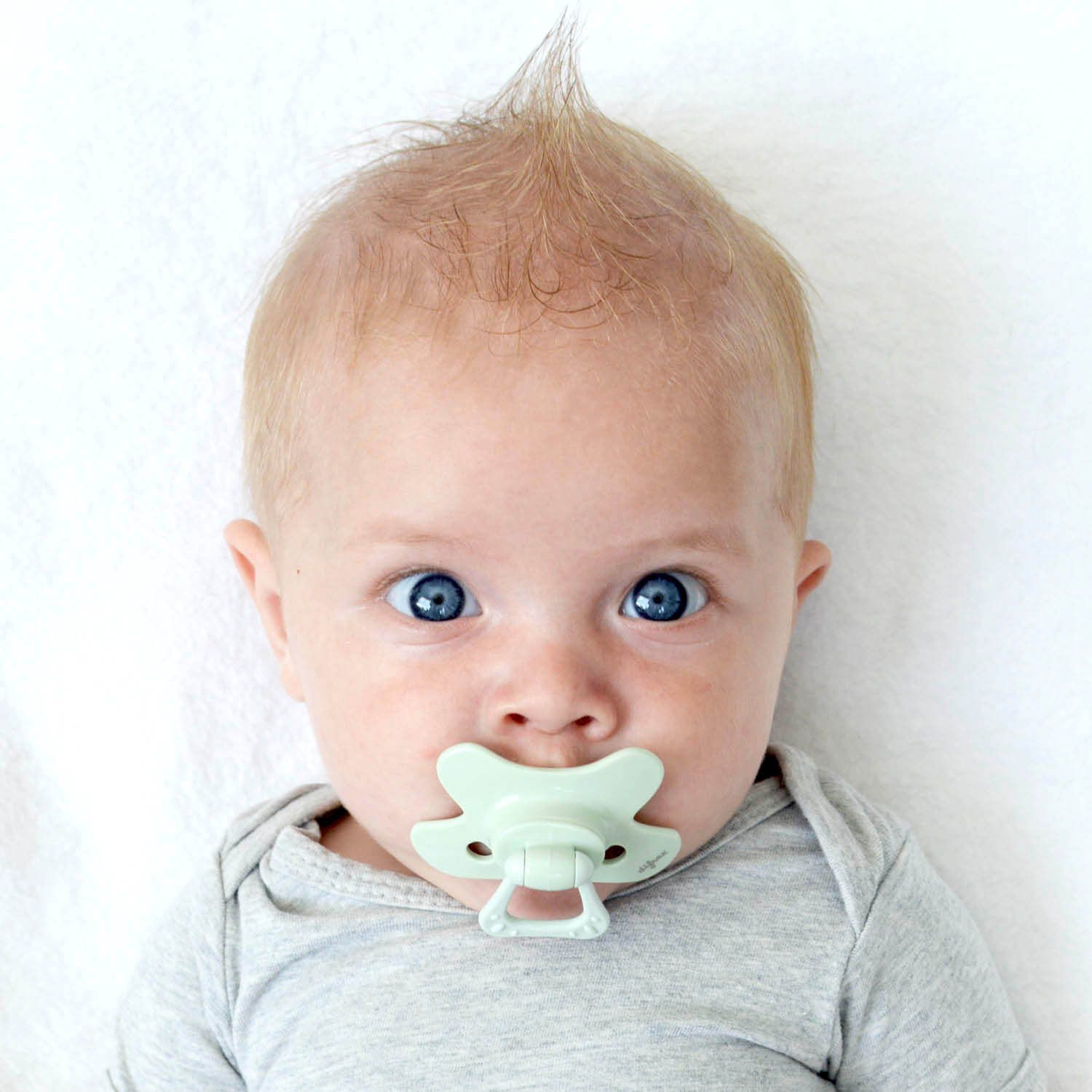 The unique pacifier has a butterfly shaped shield ensuring a perfect fit to your baby’s face. The recess for the nose enables your baby to breathe freely through the nose. Two airy holes on each side provide additional airflow, preventing skin irritation.