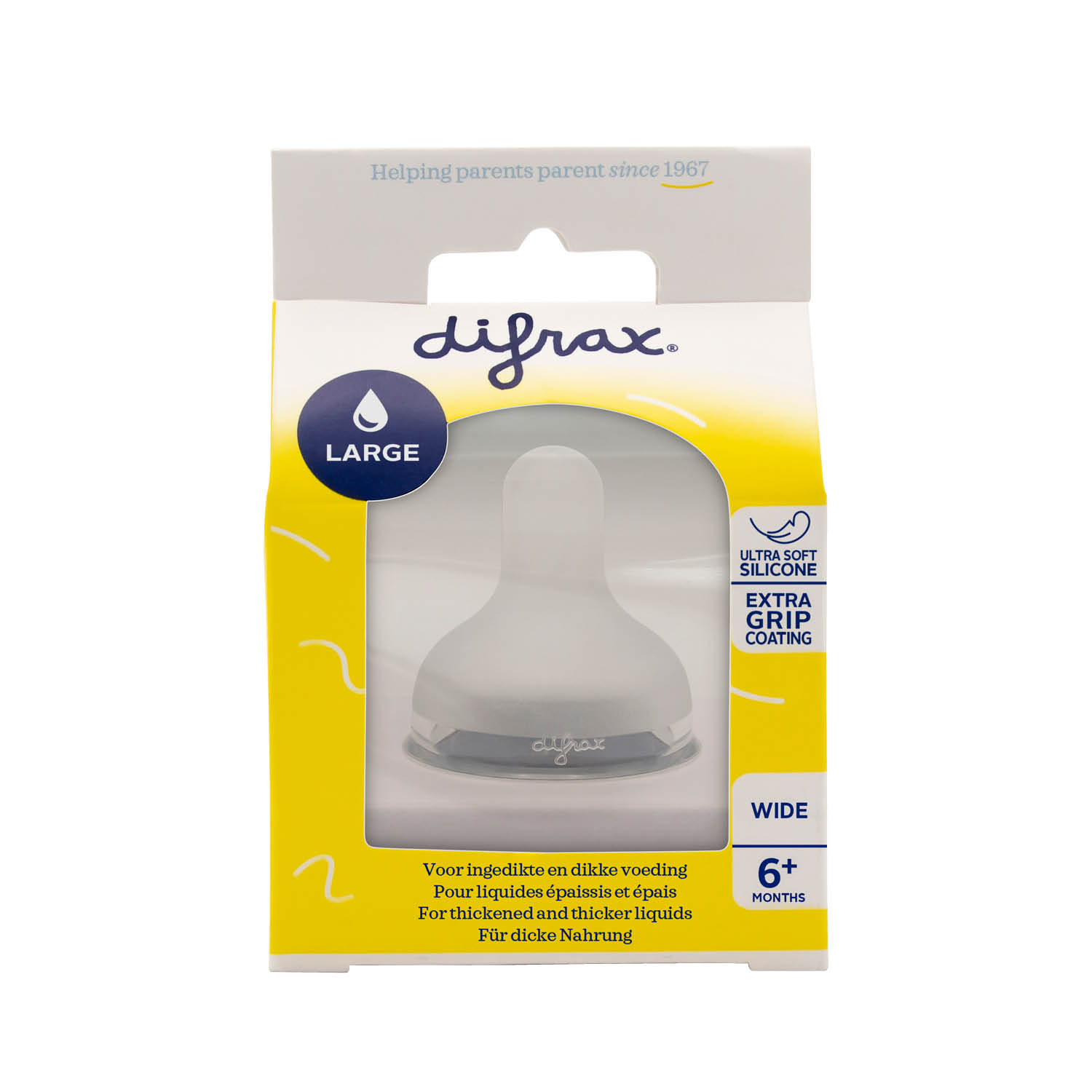 The Difrax Bottle Teat Wide Natural – Large fits the wide S-baby bottle and has a silky soft, breast nipple-shaped teat which resembles the mother’s breast. This perfectly facilitates mixed feeding, rotational breastfeeding and bottle feeding.