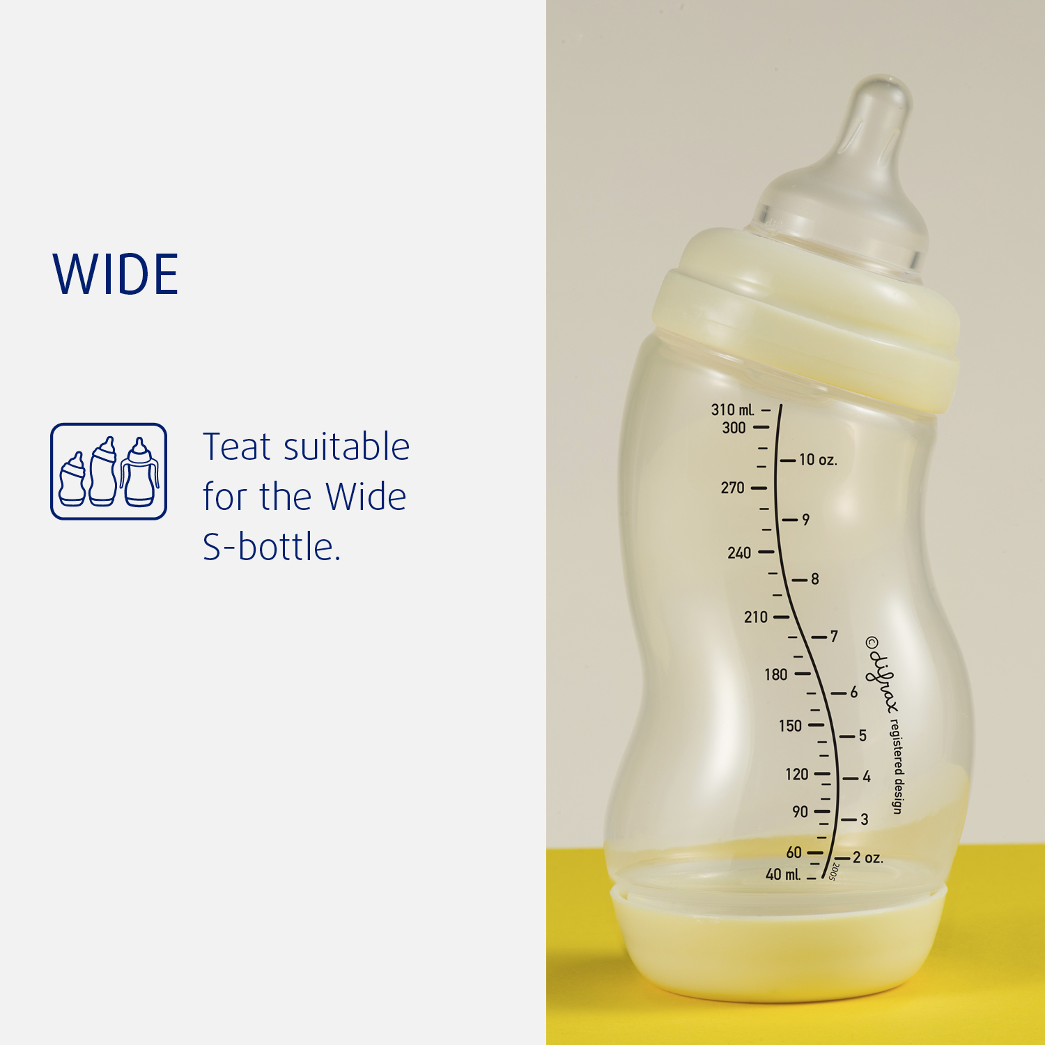 The Difrax Bottle Teat Wide Natural fits the wide S-baby bottle and has a silky soft, breast nipple-shaped teat which resembles the mother’s breast. This perfectly facilitates mixed feeding, rotational breastfeeding and bottle feeding.