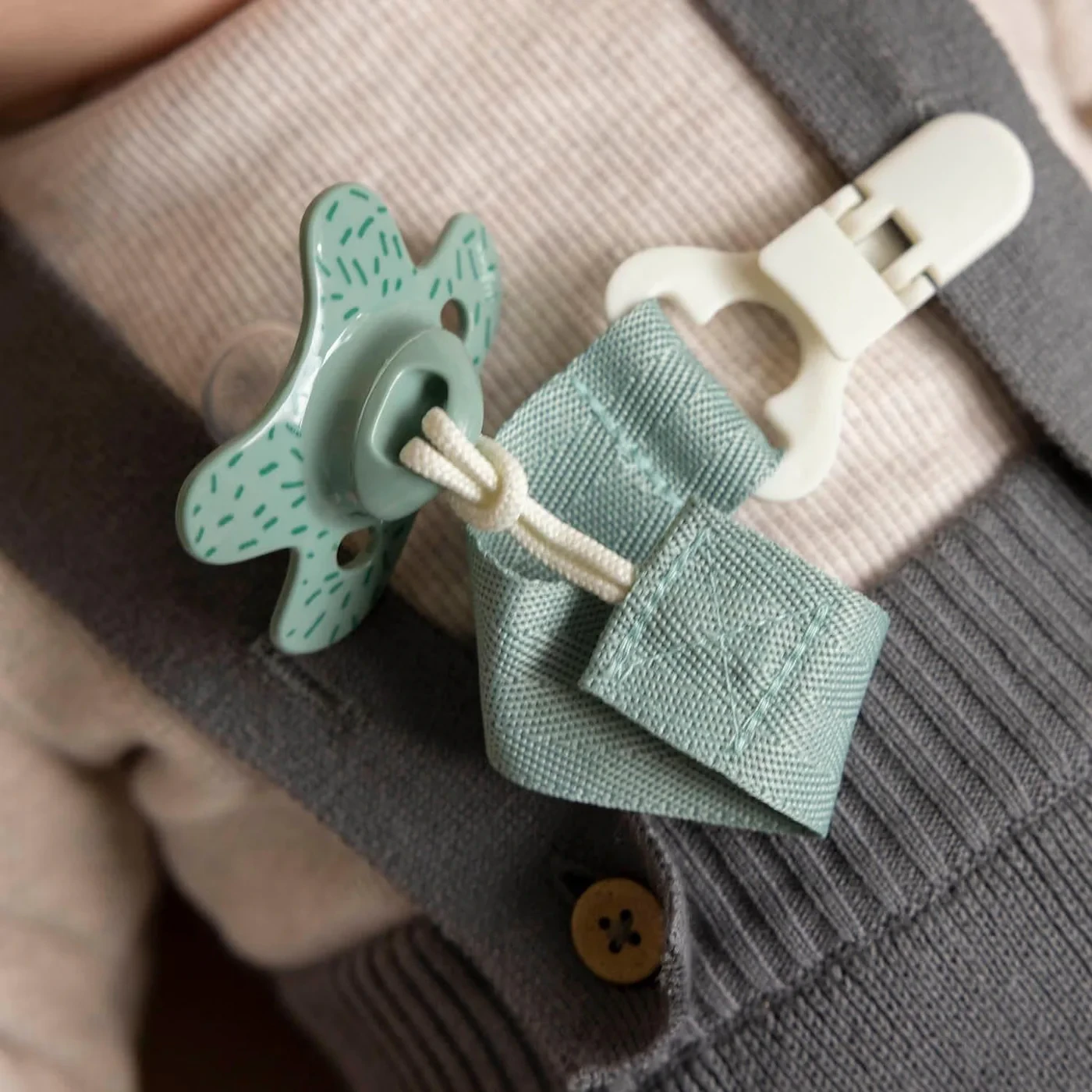 *Athugið að einungis skal festa snuddubandið í fatnað, það er ekki hannað til að festa í vöggu eða rúm.