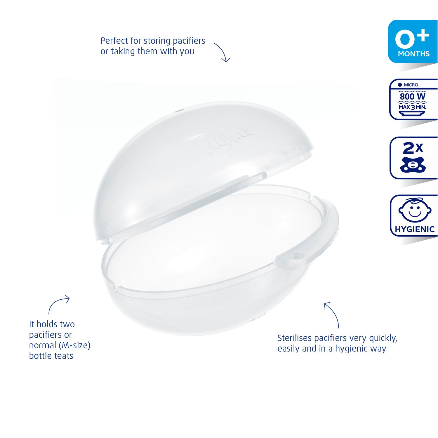 Difrax sótthreinsandi eggboxið gerir þér kleift að þrífa og sótthreinsa snuð á einfaldan, fljótlegan og heilsusamlegan hátt.