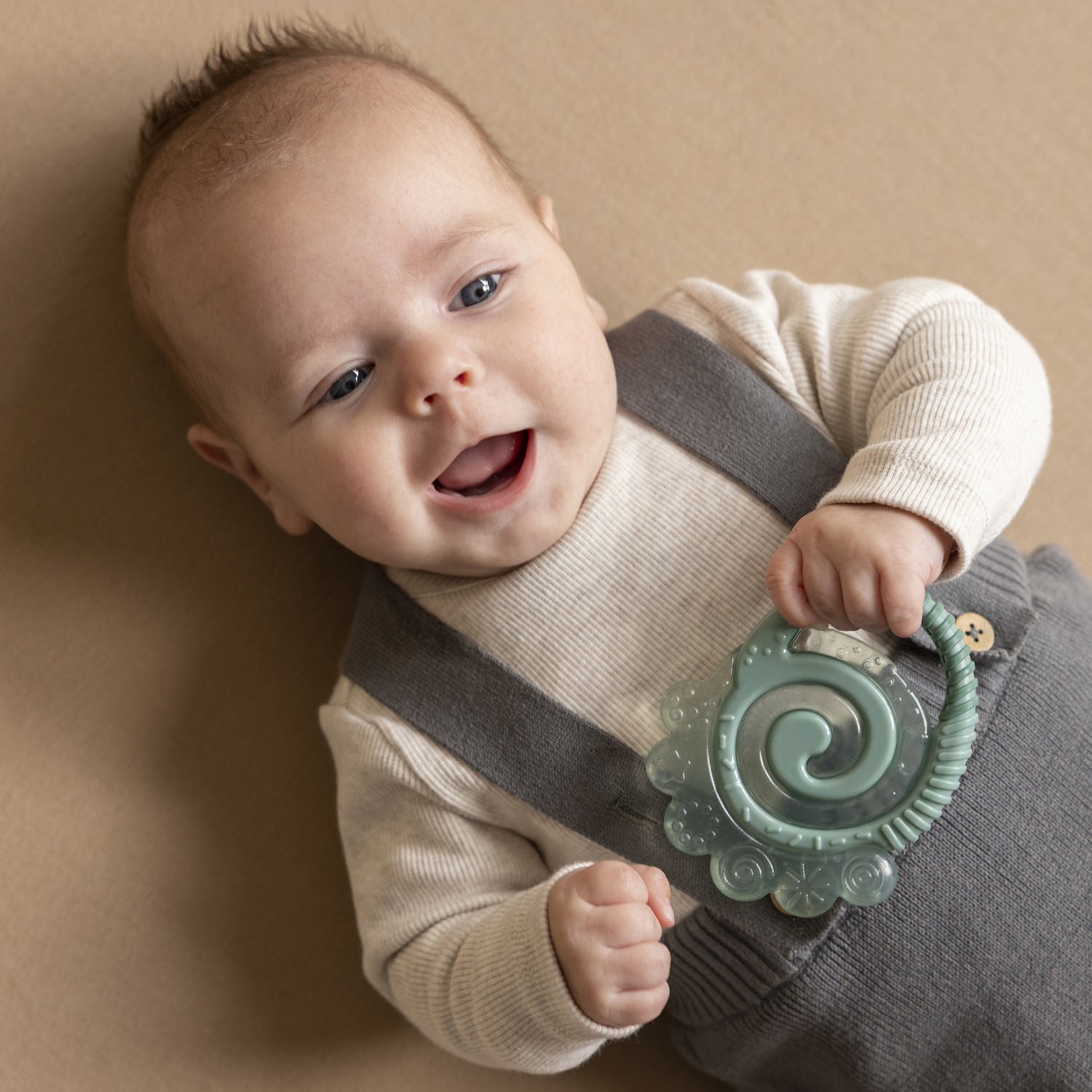 This teething toy is easy for tiny baby hands to grasp.
