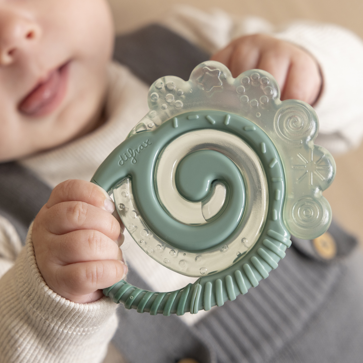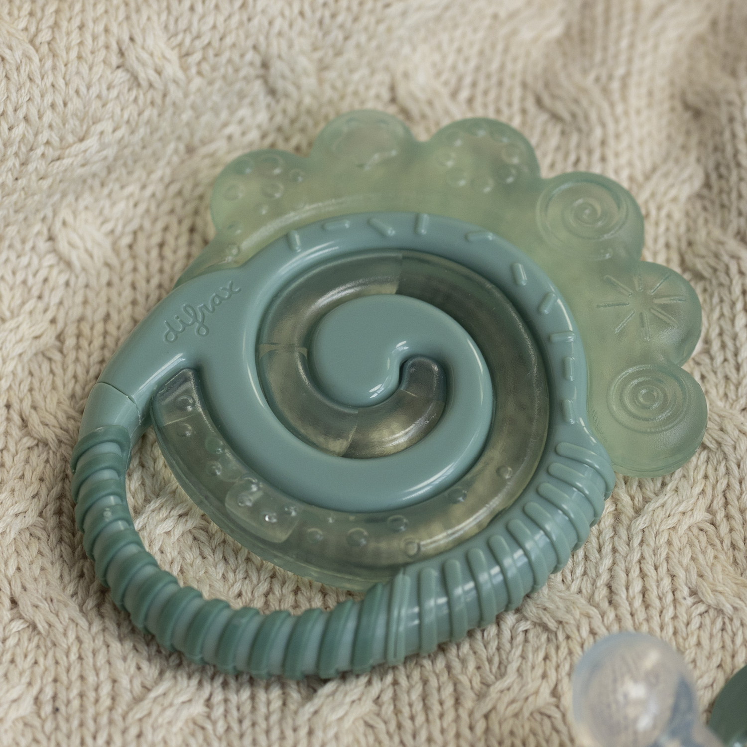 To cool: place the Difrax water filled teething ring in the refrigerator – not the freezer – for half an hour.