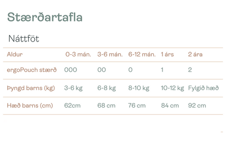 Náttfötin henta einstaklega vel undir ergoPouch Cocoon svefnpokann og svefnpokagallann.