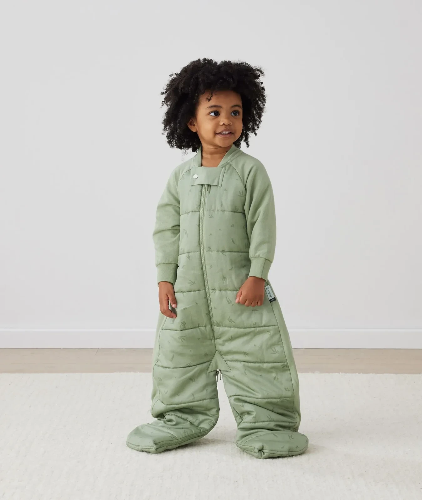 The award-winning Sleep Suit Bag converts from a Sleeping Bag to a Sleep Suit with legs using the 4-way zippers. The GOTS certified Organic Cotton outer layer has a silky smooth feel, similar to the feel of a sheet on your own bed. The stretchy side and shoulder panels are made from organic jersey cotton and the ergonomic design allows your little one to move freely. In Sleep Suit mode, this is the perfect solution for little wrigglers who like more leg freedom in sleep. The product can also be used with a 5-point harness such as in a pram for day sleeps on walks*. In Sleep Suit mode, the product provides comfort by not restricting the legs and reduces the risk of cot climbing injury. Grip pads on the feet keep your little one stable if walking overnight to the bathroom (or into your room!). The four-way zippers provide ease of use for overnight toilet training. In either Bag or Suit mode, the product is hip-friendly for growing hip joints. The 2.5 TOG Sleep Suit Bag is perfect for keeping a child warm in cooler room temperatures 17–21°C / 63–70°F. The warm 2.5 TOG rating means there’s no need for additional blankets when using this product, making it a safe-sleep option. Parents can be assured the breathable fabric will help your child maintain an even temperature and prevent overheating. The long sleeves are a soft fleecy material and rated 1.0 TOG to provide extra warmth on chilly nights. The sleeves feature fold over cuffs for keeping hands warm too. Parents can follow the FREE room thermometer and What to Wear guide provided with the product, to layer appropriately underneath. We recommend pairing this pouch with one of our TOG-rated Layers.Safety