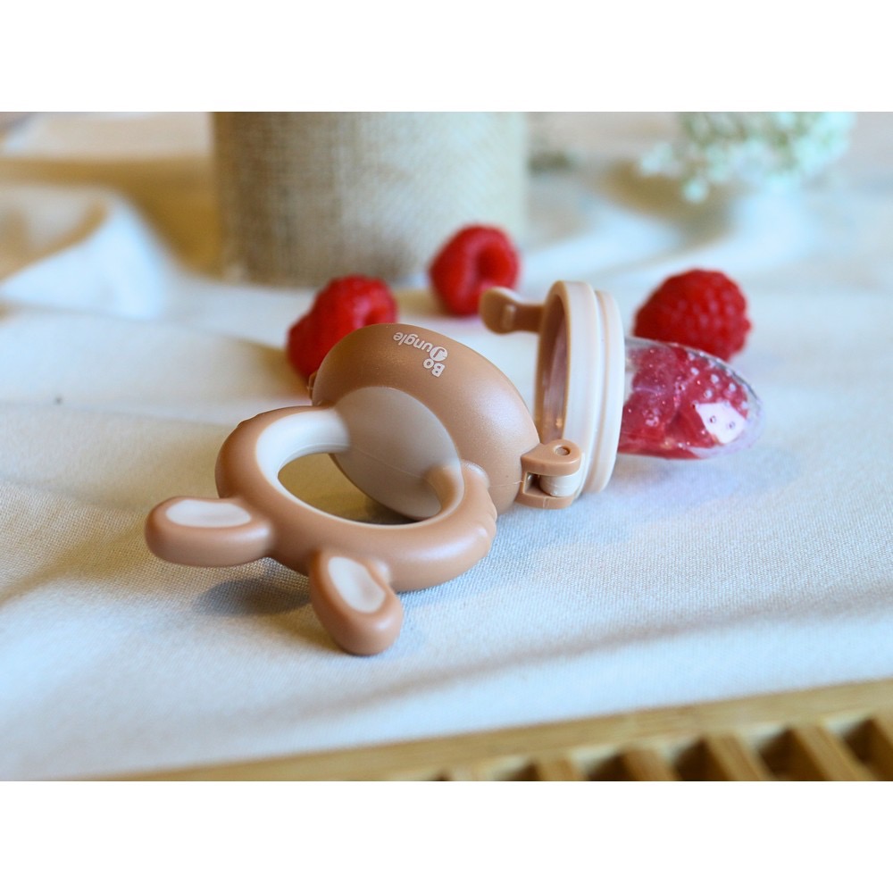 With this cute Foxy Fruit Feeder 4-in-1, your little one can taste all kinds of delicacies to his heart’s content and above all safely. Cut vegetables and/or fruit into small pieces and place themin the appropriate attachment or net. This way they discover new flavors without the riskof choking. Thanks to the handy lid, you can store the fruit feeder without mess afterwards