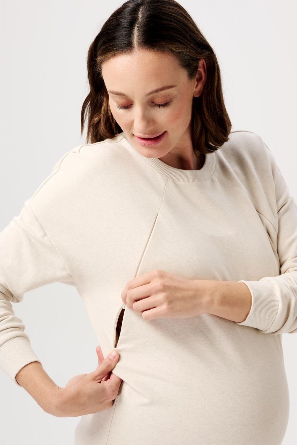 Ultimate comfort! The Noppies Maternity Essentials Lesy sweater is super soft on the inside and sporty on the outside. The sweater is lovely and long, making sure your belly remains nicely covered up. You can certainly continue wearing this item after your pregnancy too, including when you’re breastfeeding. That’s because the hidden zip fasteners will allow for easy breastfeeding. Our Maternity Essentials are of the highest possible quality, allowing you to wear them during several pregnancies and/or possibly pass them on. These essentials will definitely also provide you with extra comfort during the (recovery) period after your pregnancy. Choose one size larger for an oversized look.