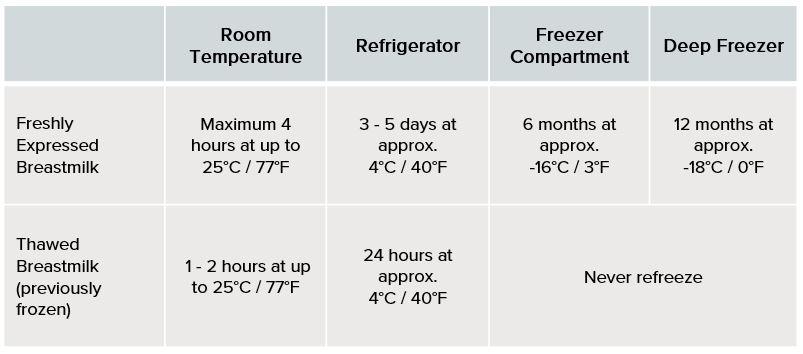 Ekki skal þíða frosna brjóstamjólk í örbylgjuofni eða í potti með sjóðandi vatni. Ekki skal frysta þídda mjólk á ný.