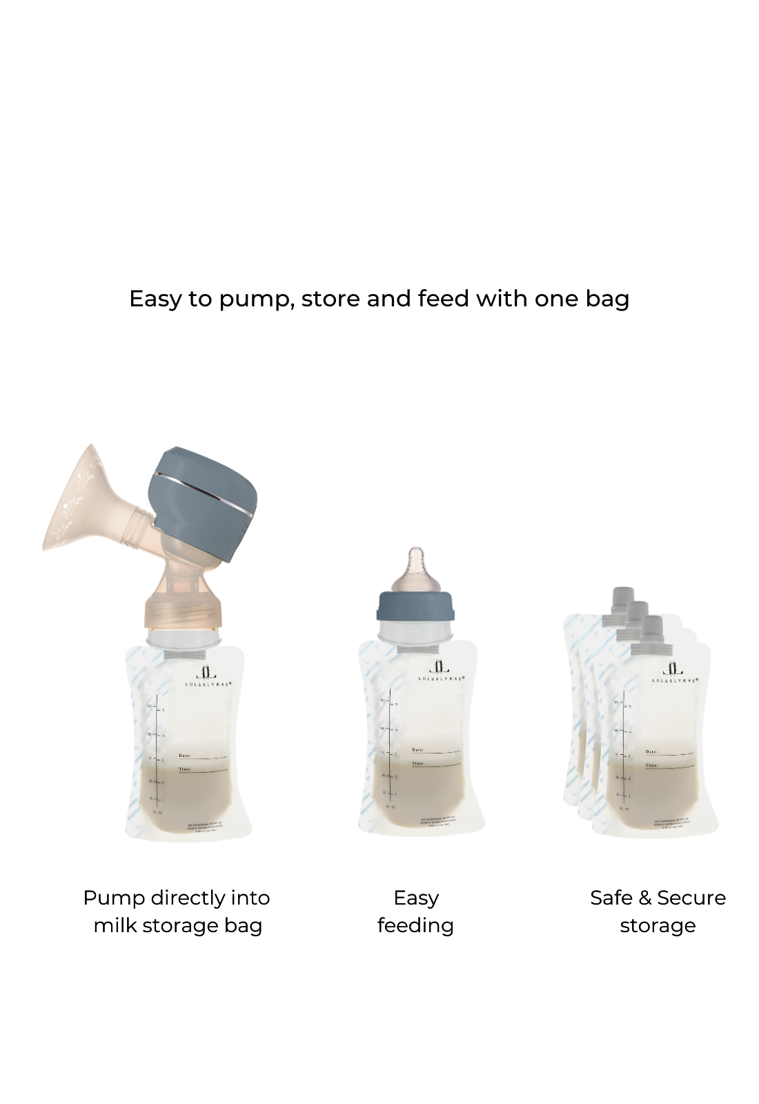 Our Smart Breast Pump & Milk Bags range makes everything easier. By using a single pouch to express, store, warm and feed, there is no need to sterilize bottles or transfer milk at any stage. These unique breastmilk pouches are the perfect fit for the Lola&Lykke® Smart Electric Breast Pump, simply attach the pocuh into the breast pump with our adapter so your baby can enjoy every drop. The breastmilk pouch connects directly to our milk bottle teat for a smooth transition from breast to bottle.