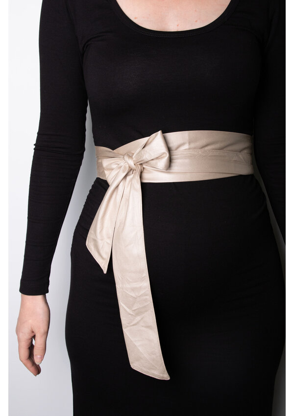 Mjúkt belti frá Love2Wait sem hægt er að nota við kápur, peysur, kjóla o.s.frv. til að undirstrika kúluna og setja punktinn yfir I-ið.