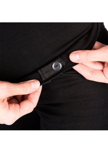 Ótrúlega flottar og þægilegar meðgöngubuxur. Með hárri teygju yfir stækkandi kúlu og stillanlegar í strenginn svo þær sitji sem best. Eru aðsniðnar og niðurmjóar. Í sídd 32.