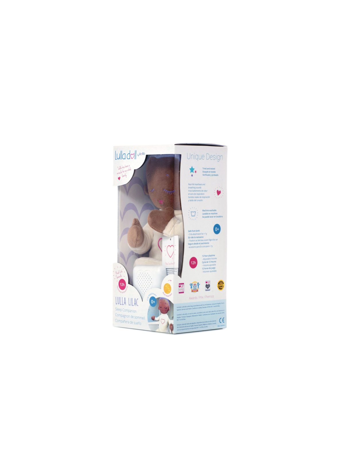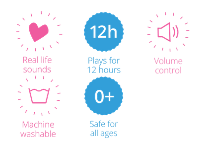 Both the purpose and the design of the Lulla Doll differs from other seemingly similar products. The purpose of most other sleep related toys is to help babies fall asleep with the help of white noise, sometimes resembling womb sounds. The Lulla Doll, on the other hand, is designed to help babies stay asleep for longer periods at a time, and to help babies stabilize and feel safe. It is imitating closeness to another person, more than trying to replicate the womb experience. The doll aims to do this with its unique real-life sounds that play for 12 hours. Other products only stay on for 15-45 minutes (or are movement activated), the sound file is not as large and the sounds are often not real-lifeIs the doll safe for newborns?