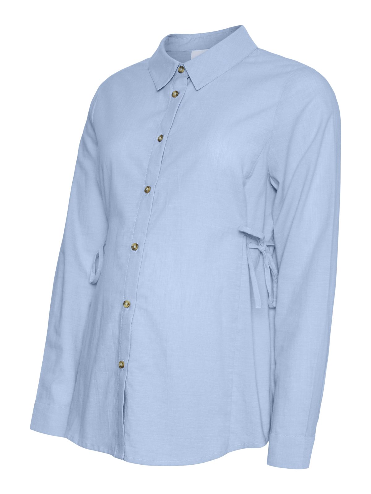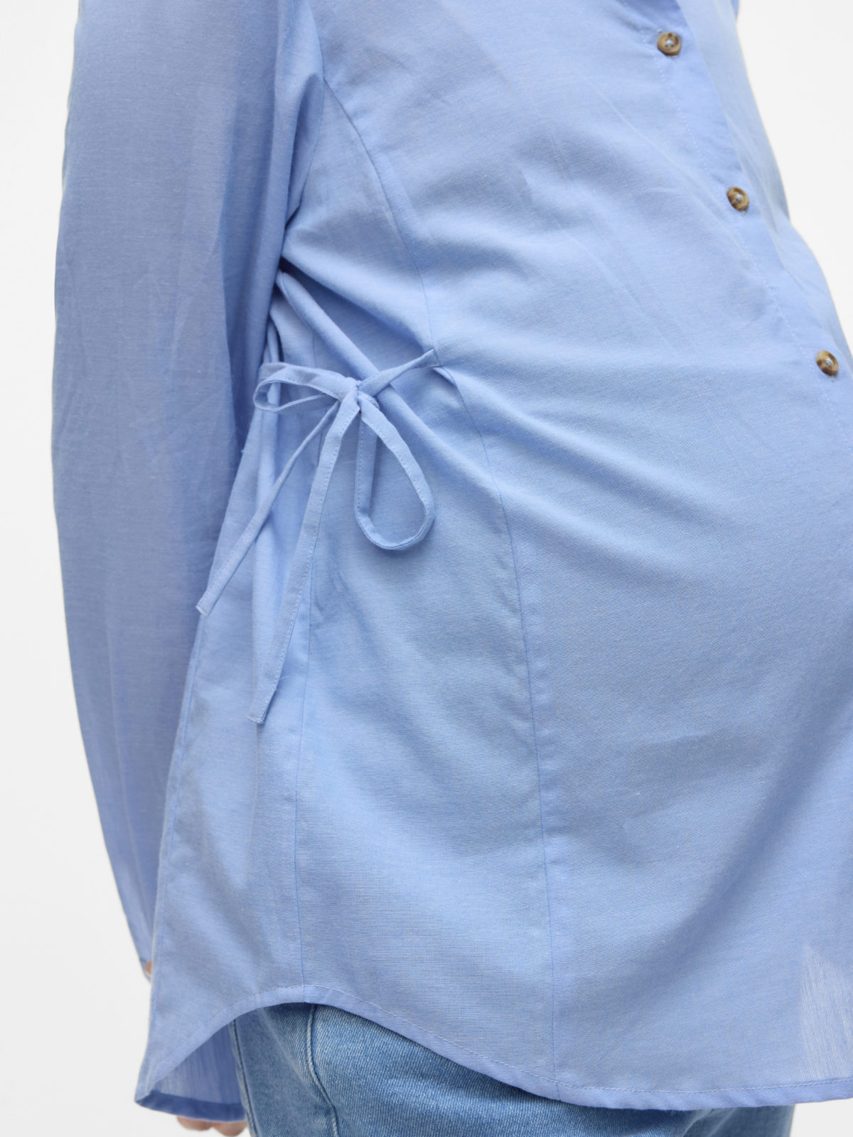 Falleg ljósblá skyrta frá Mamalicious. Nægt rými fyrir stækkandi kúlu.