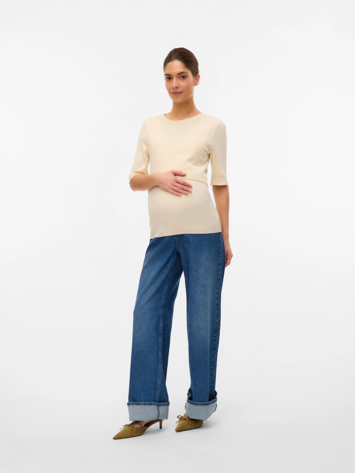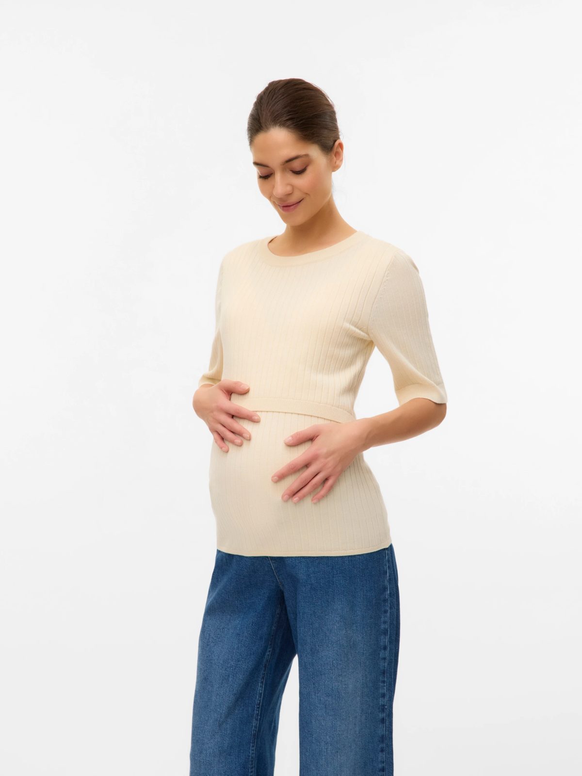 Leap into the season of new beginnings in soft and beautiful 2-in-1 spring styles for both pregnancy and nursing. - Product Type : Knitted pullover - Neck : Round Neck - Sleeve : 2/4 sleeves - Cuffs : Ribbed cuffs - Extra details : Nursing function with a hidden nursing layer - Fit : Regular Fit