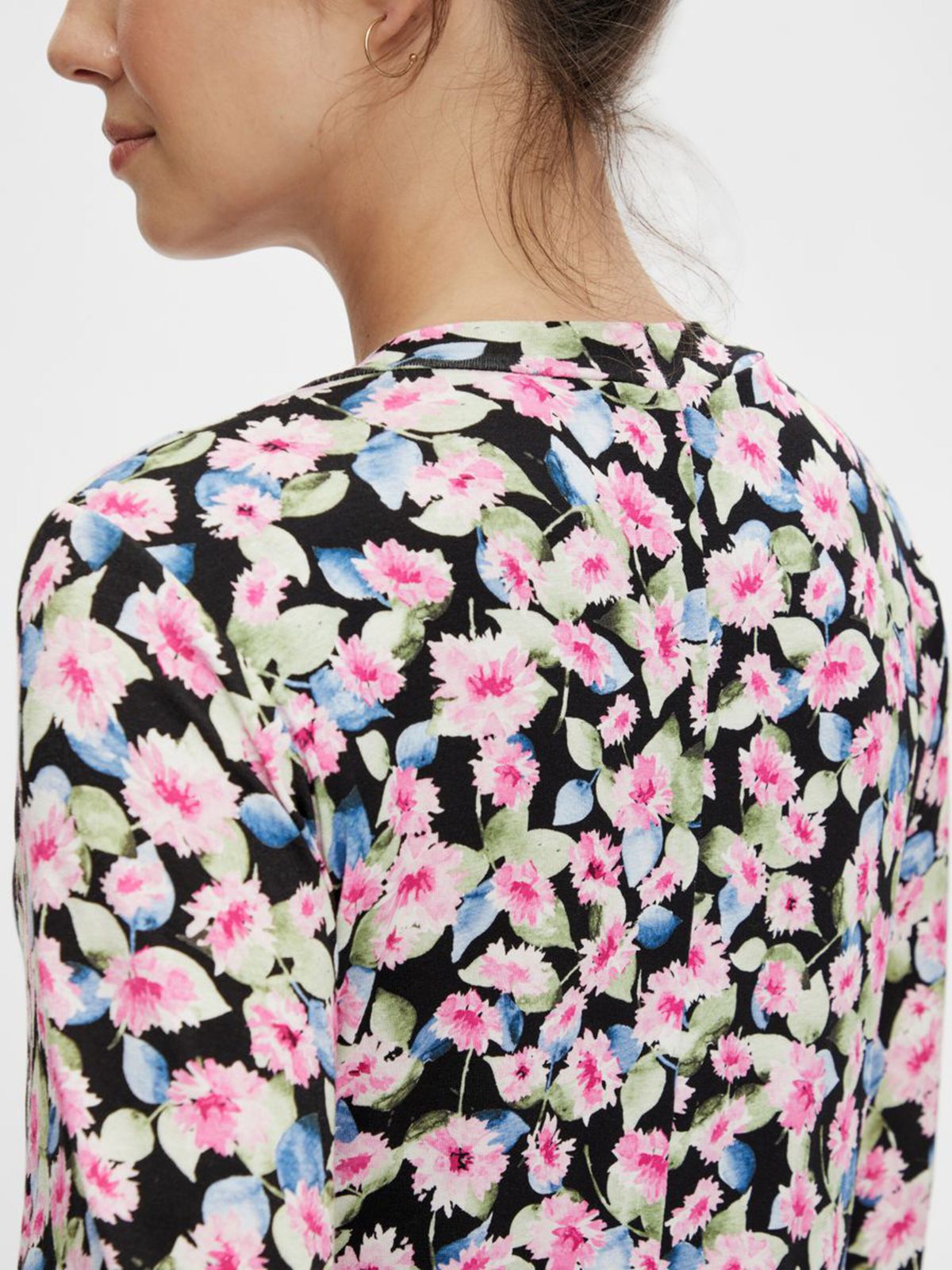U-laga aflíðandi hálsmál og útvíðar ermar í 3/4 lengd.