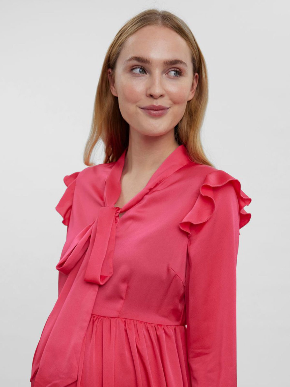 – 2-in-1 maxi dress with pussy bow collar