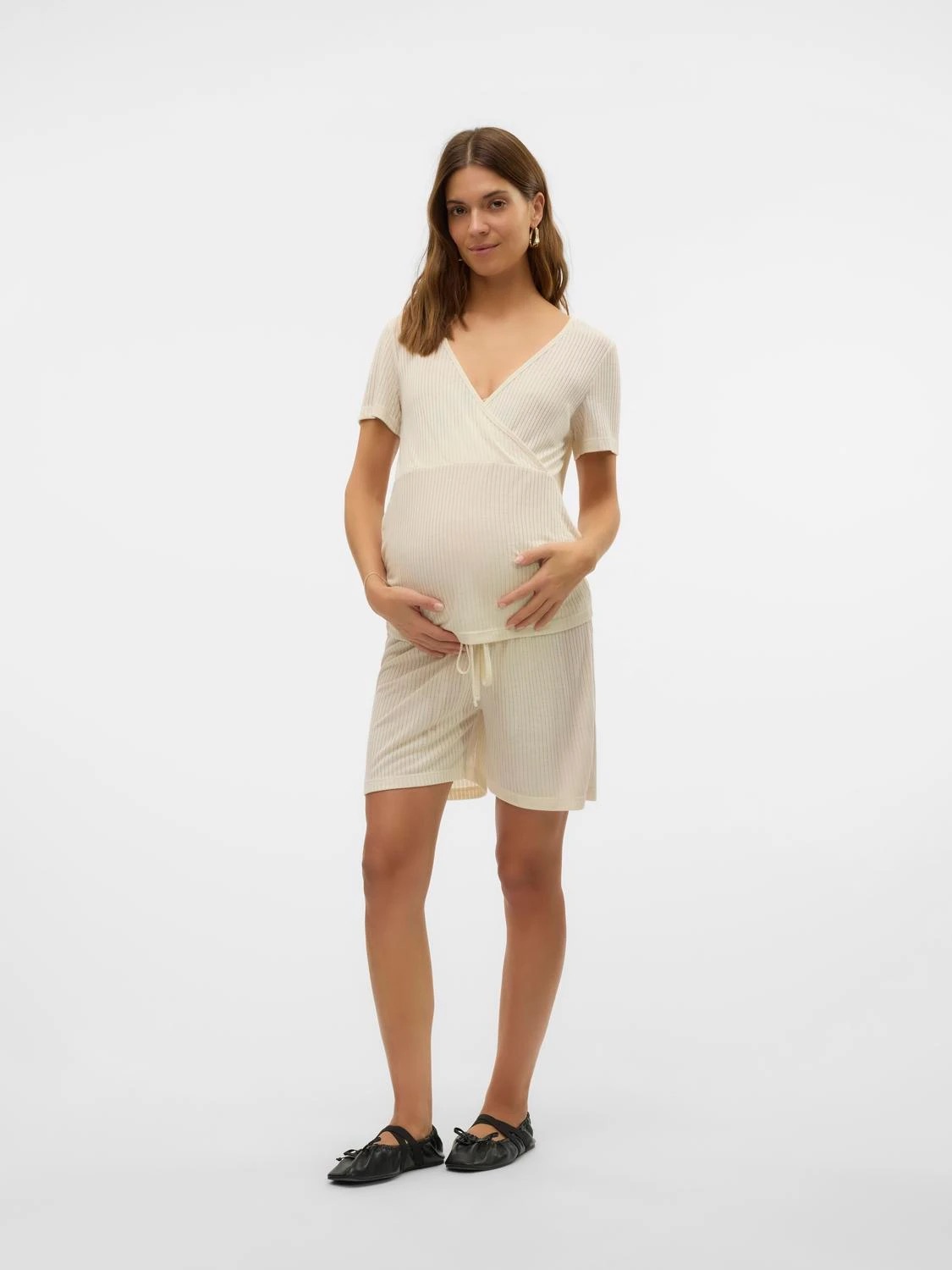 Sleep tight in soft and cosy 2-in-1 nightwear styles for both pregnancy and nursing. - Product Type : Pyjama set - Sleeve : Short sleeves - Extra details : Nursing layer under a wrapped effect