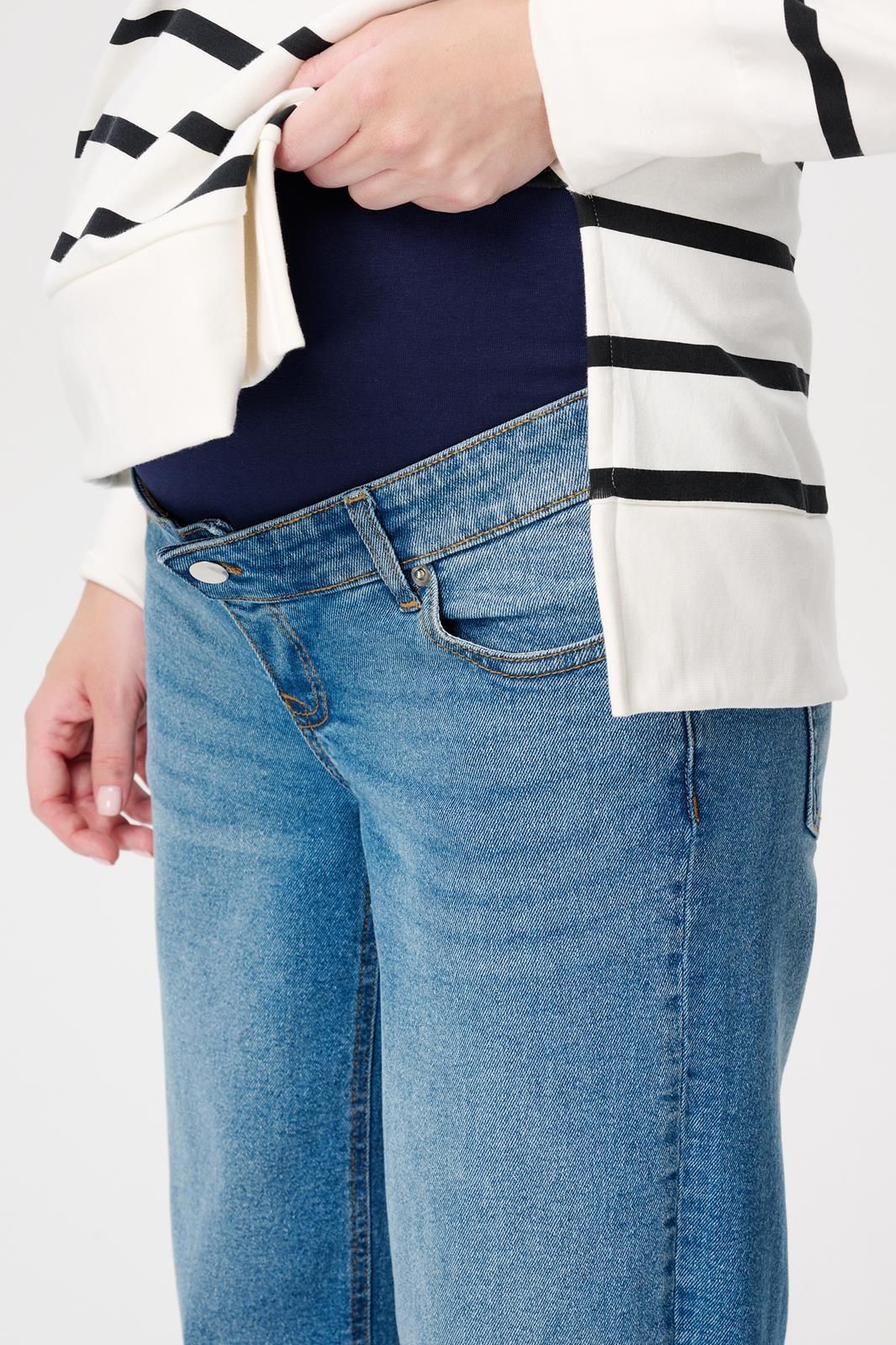 The perfect base for a stylish outfit! Our beautiful Lemi jeans assure you of style, comfort and convenience, making them a real must-have for mums-to-be. The wide legs give the garment a trendy look. The relaxed fit means you will enjoy plenty of comfort. The jeans have an adjustable elastic waistband to ensure a perfect fit at all times. On the inside of the garment there are several buttons and an elasticated waistband with buttonholes. This way, the waistband always fits well. The jeans, available in various colours, also offer excellent support for your growing baby tummy. The item is produced according to the Better Cotton Initiative and washed in a sustainable way, which means that by wearing this garment you are automatically contributing to a cleaner planet. Upgrade your wardrobe with our Lemi jeans today.