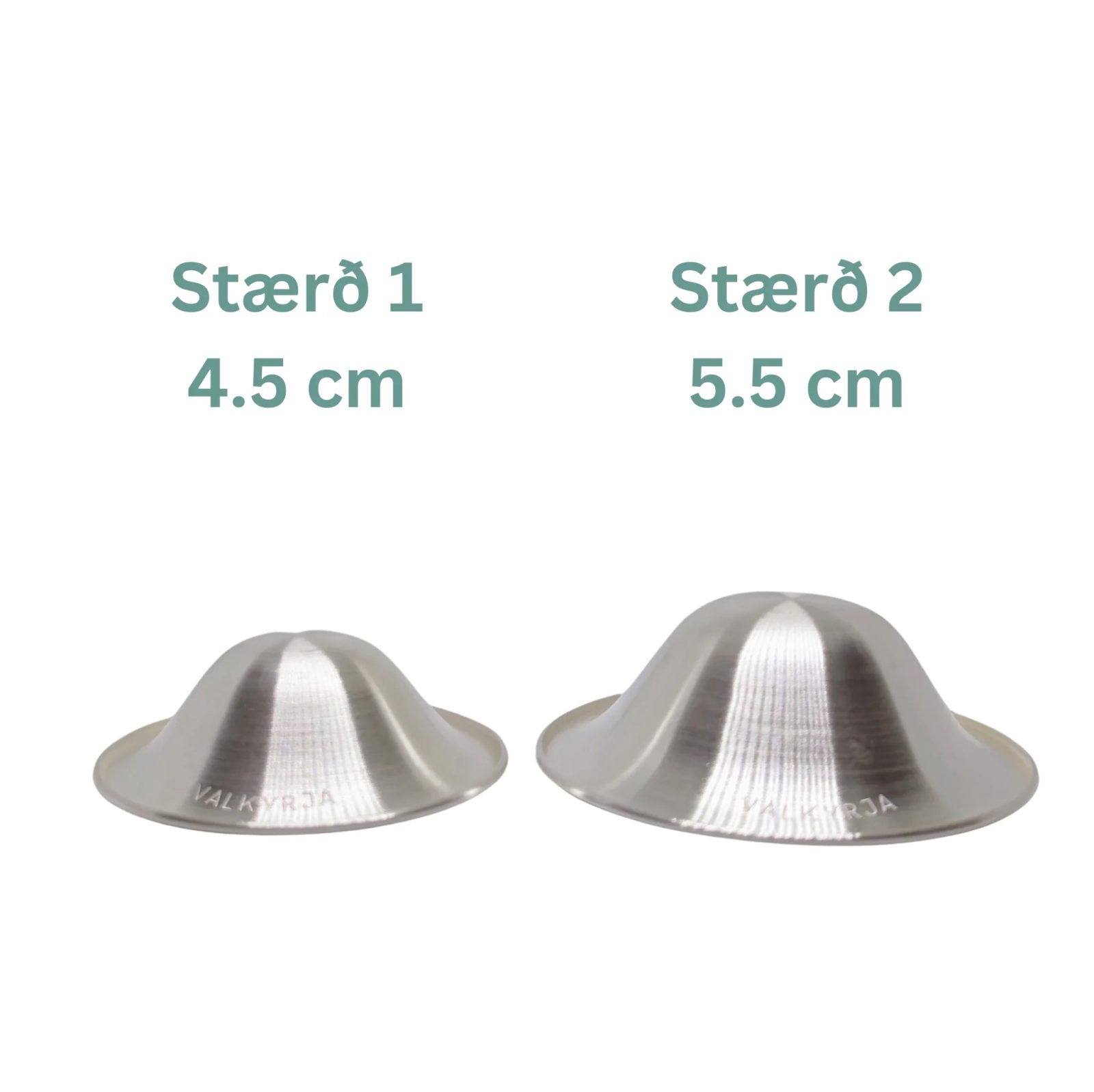 Í boði eru tvær stærðir, stærð 1 er 4.5 cm á breidd og hentar flestum brjóstum. Stærð 2 er 5.5 cm á breidd er góð fyrir brjóst með breiðum geirvörtum.